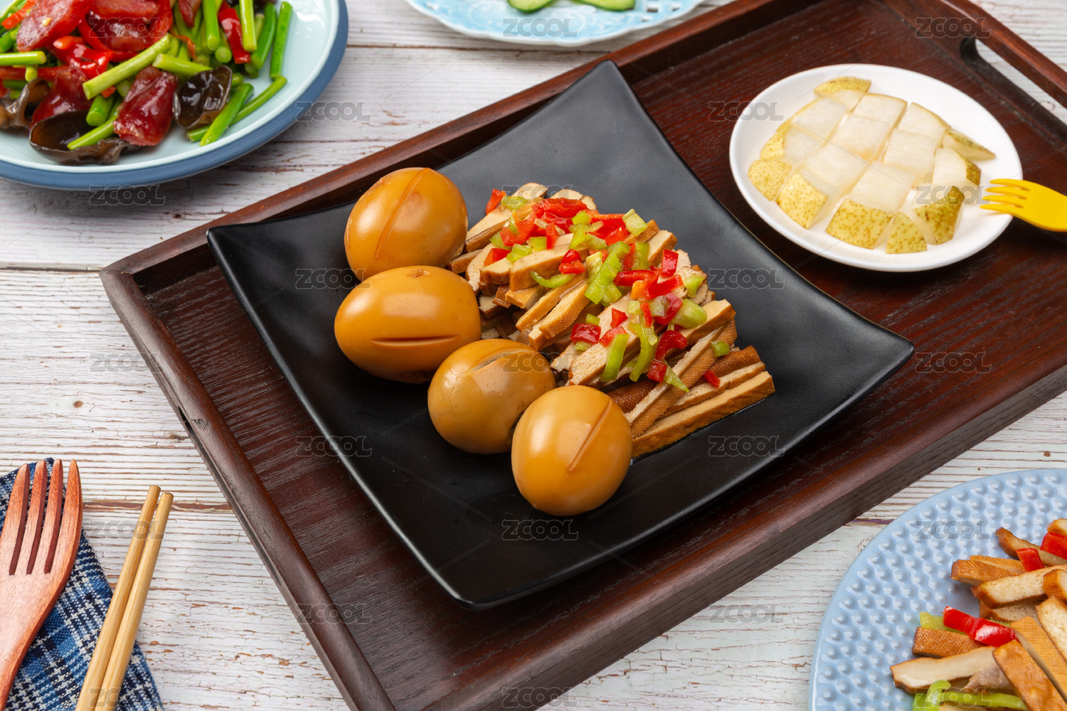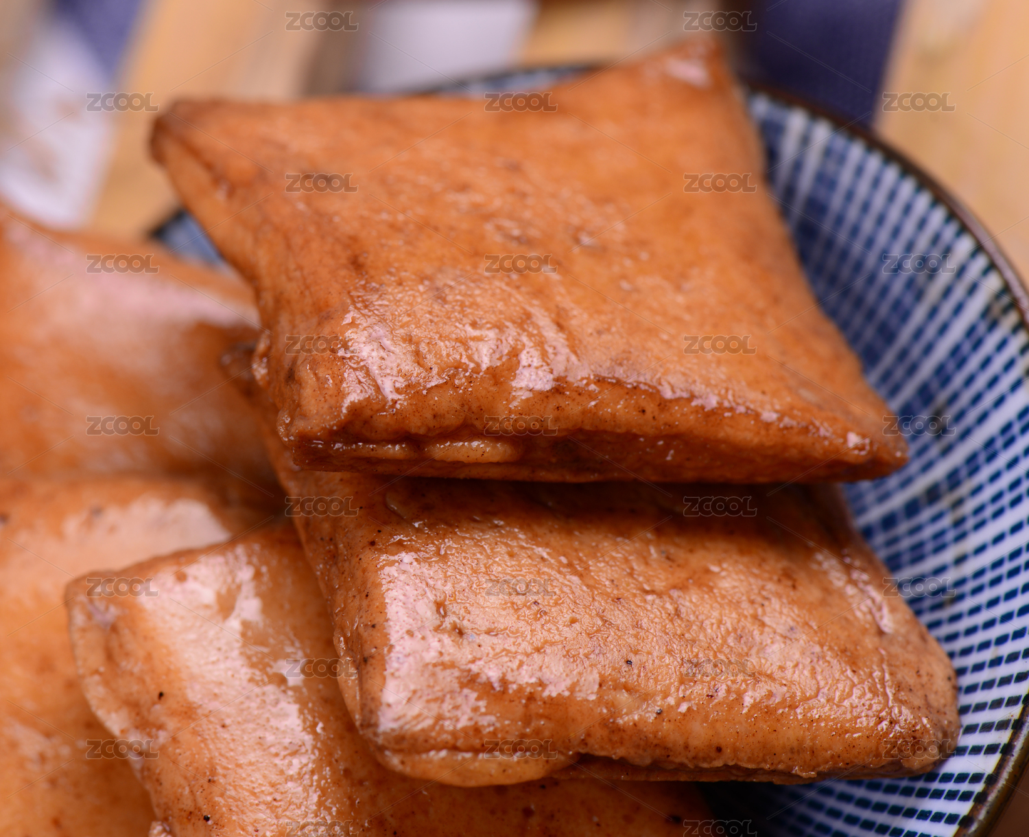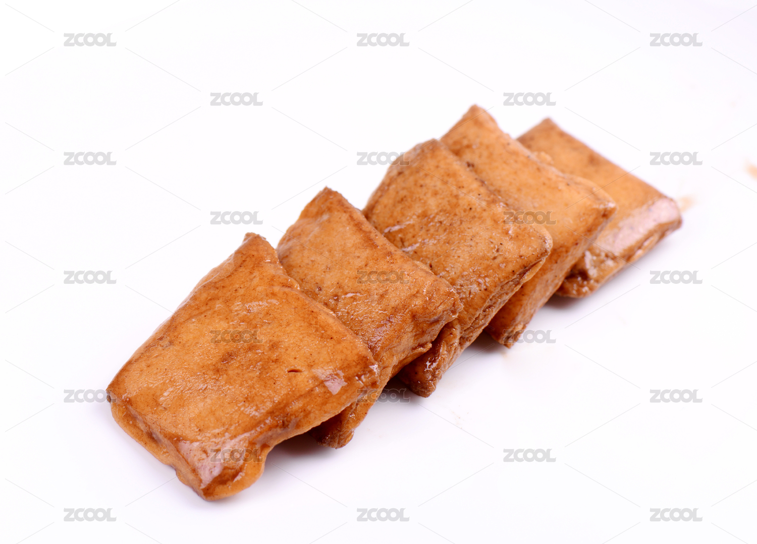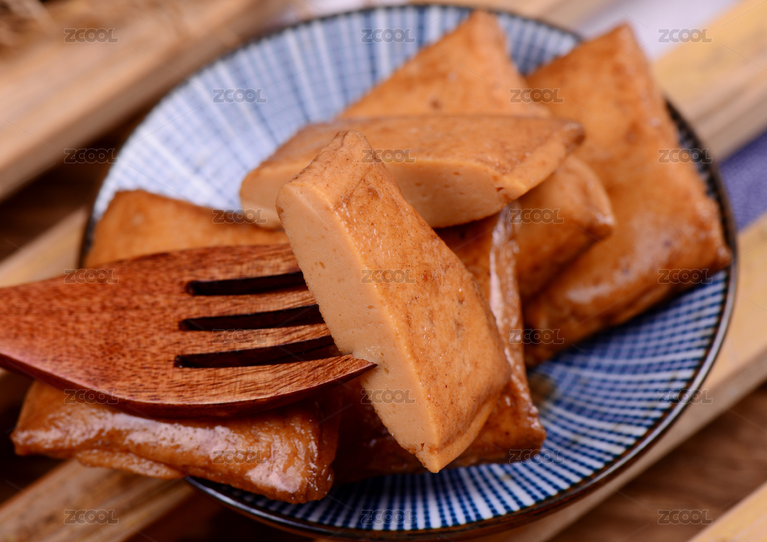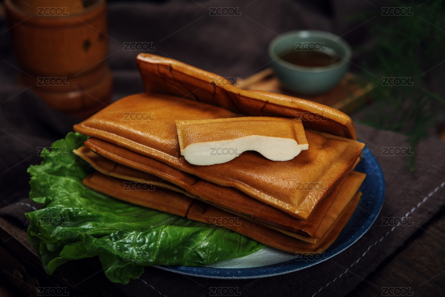 中式复古背景下放在牛皮纸上的豆干传统食品