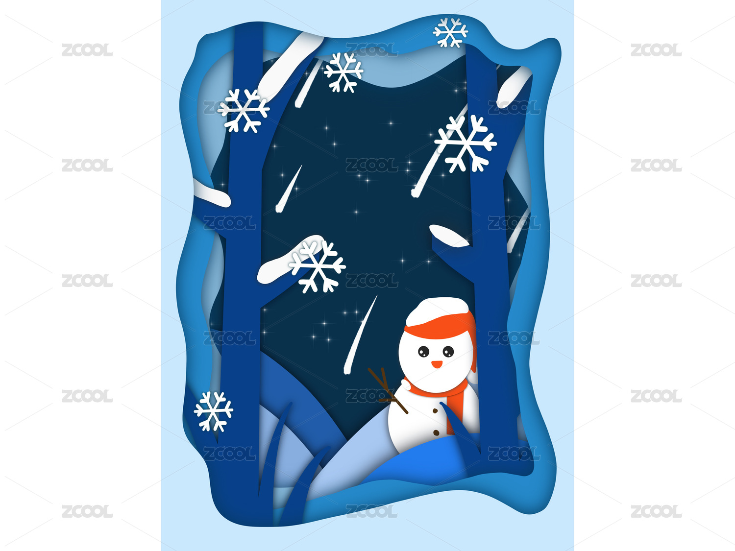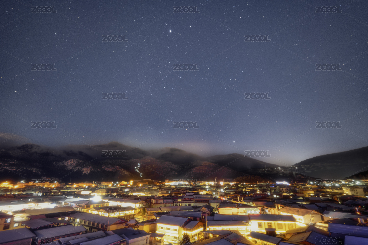 繁星星夜雪景灯火深夜山峦小屋暖光图