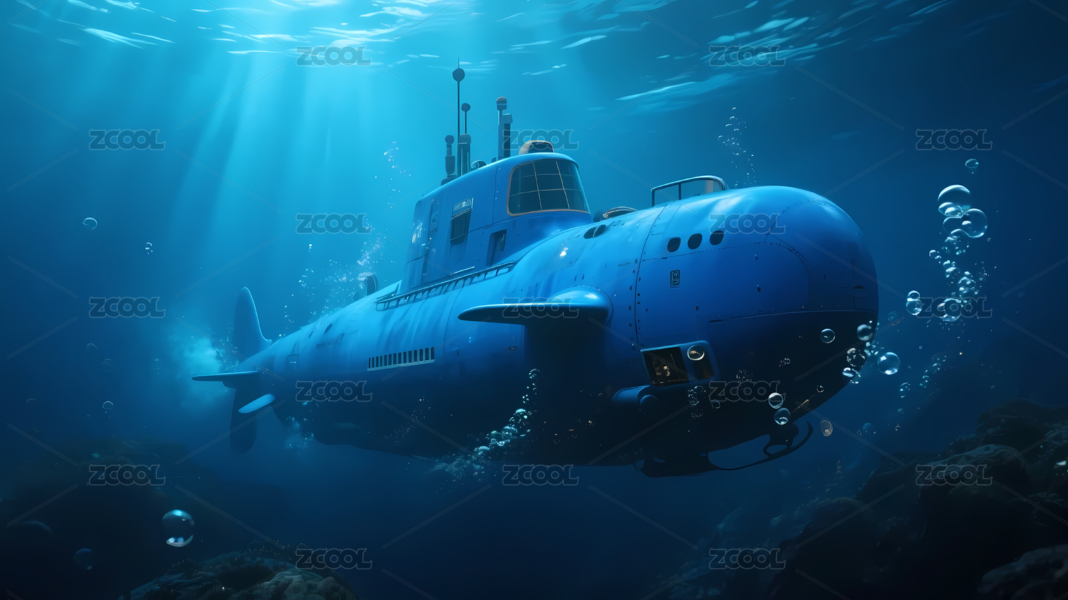 深海中的蓝色潜艇