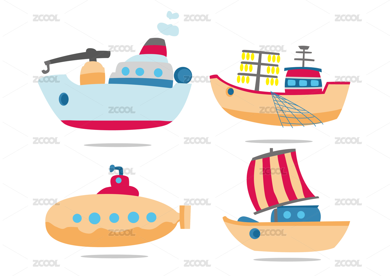 矢量可爱船舶