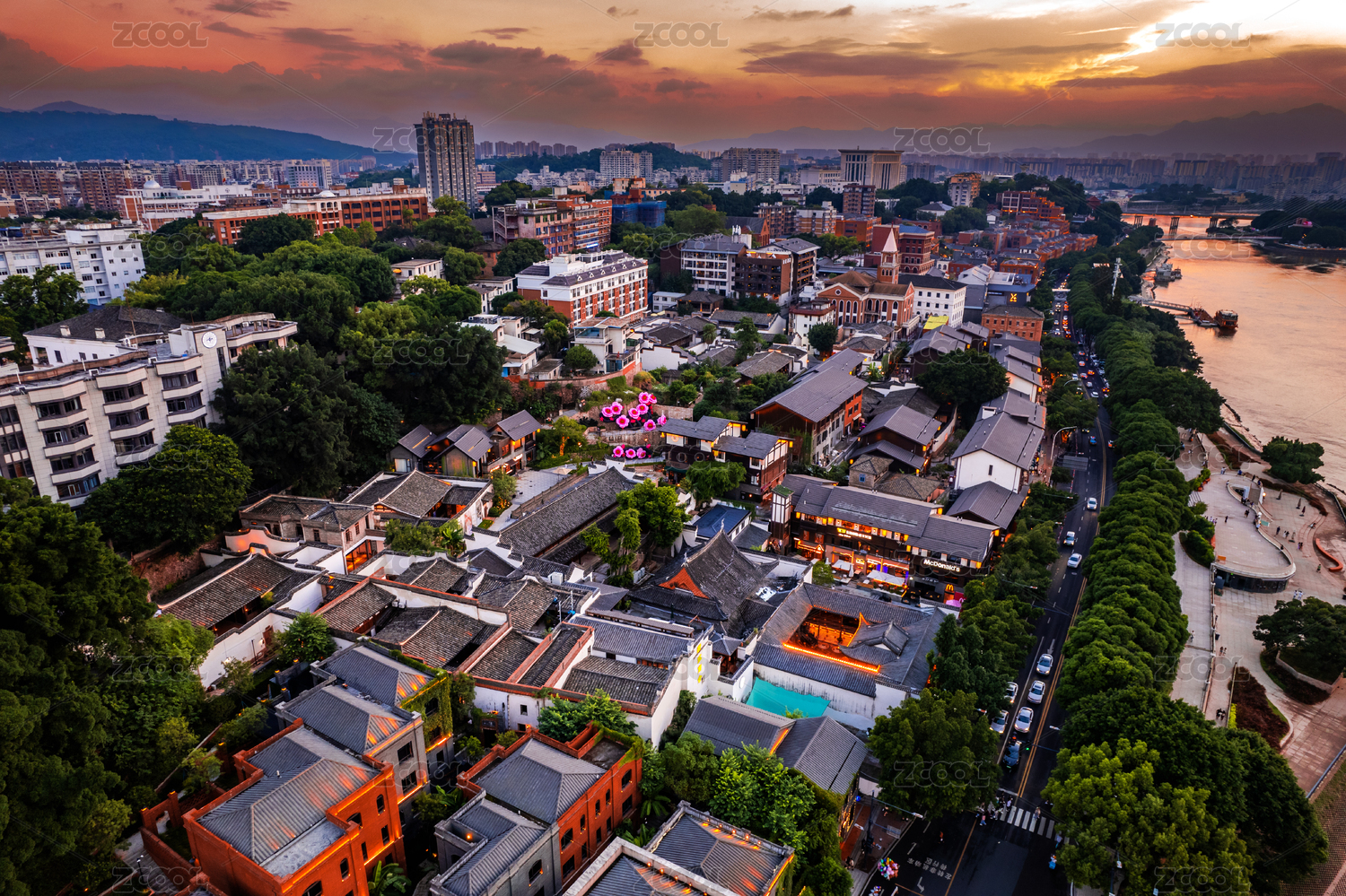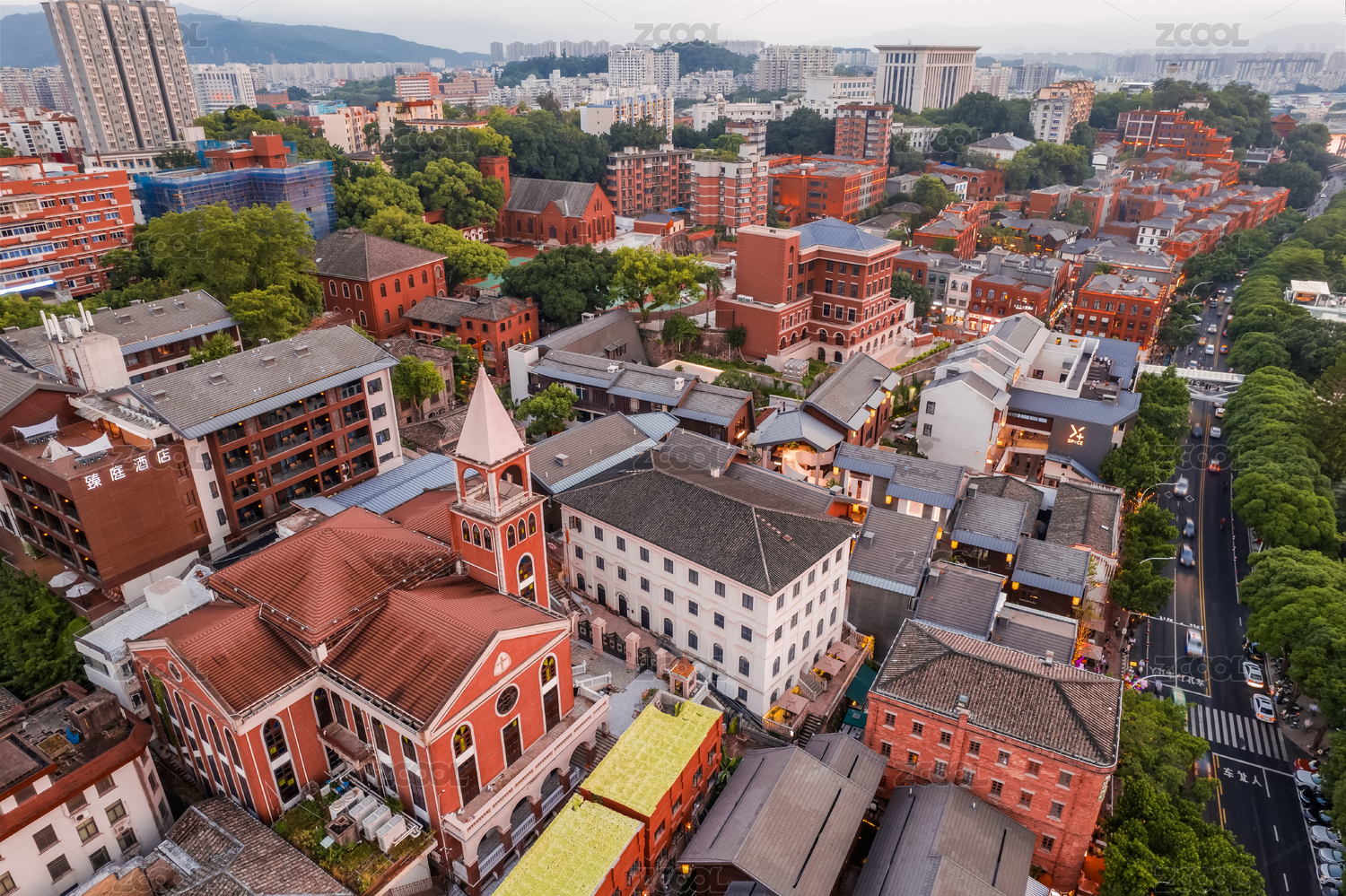 俯瞰福建福州老城区的欧式历史建筑