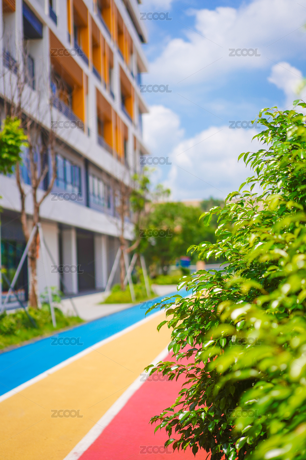 幼儿园户外彩虹色条纹装饰地面