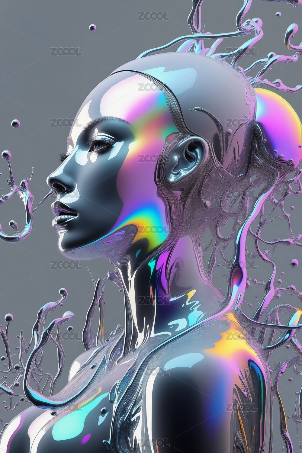 透明人形与流动色彩