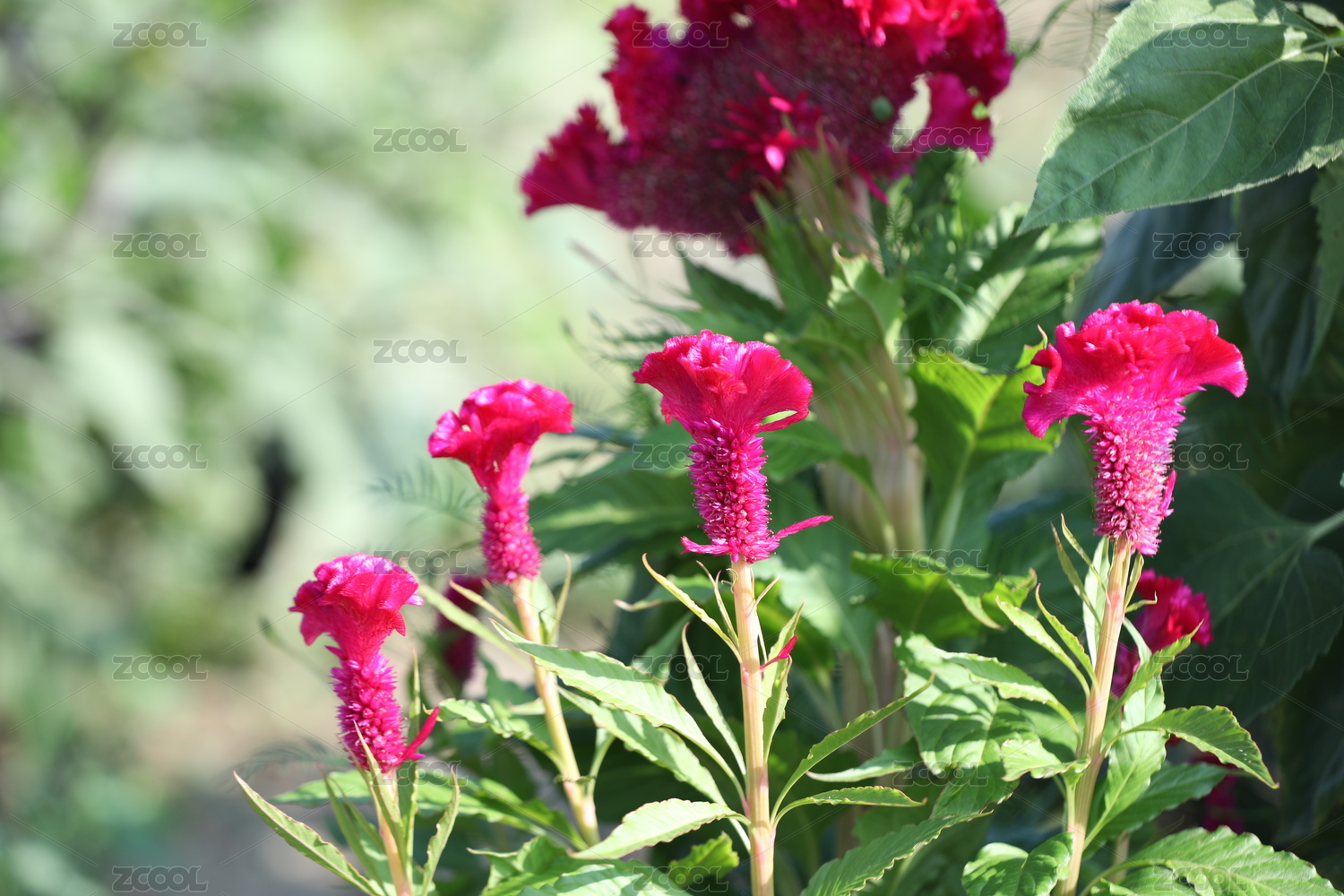 夏天公园里鸡冠花特写