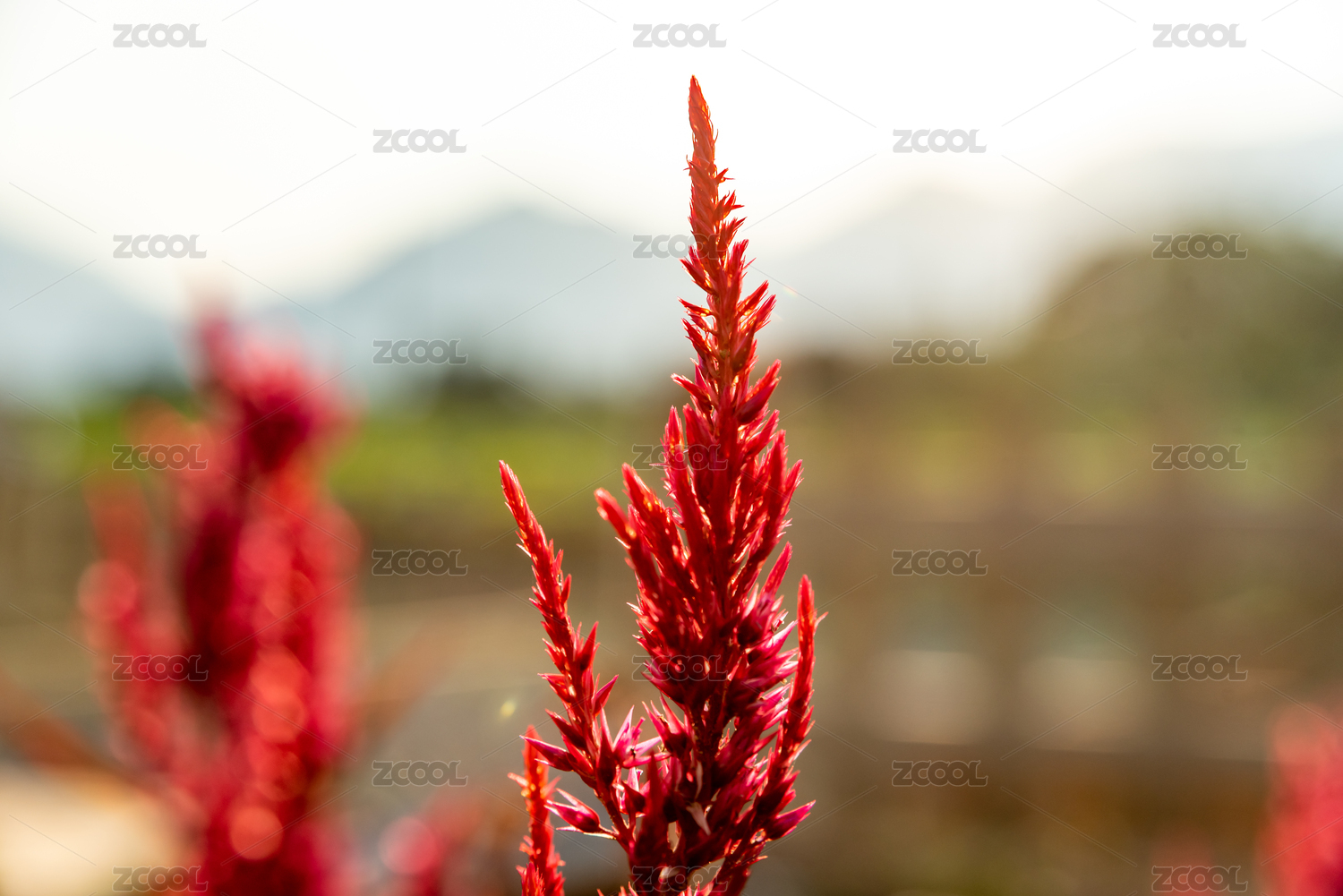 中国广东省韶关市翁源县红色鸡冠花逆光特写