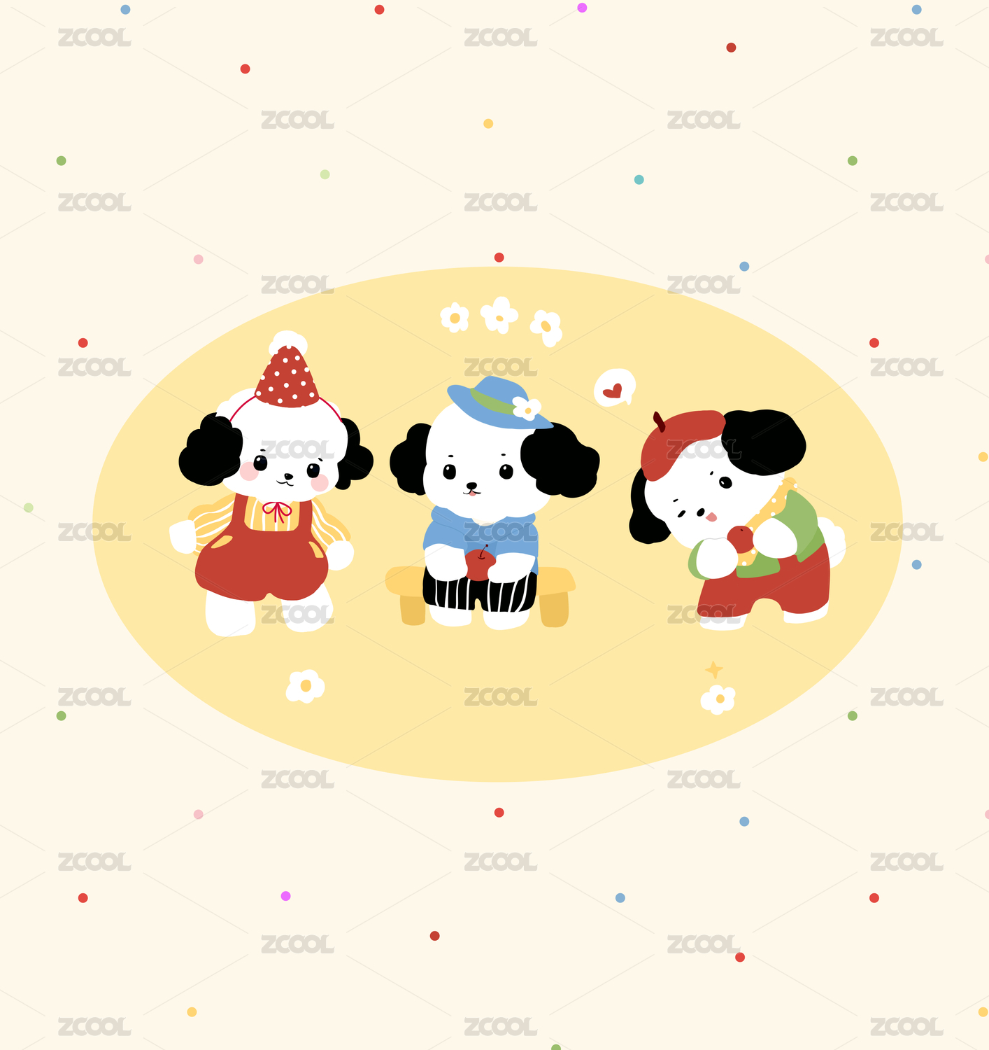 原创图案设计/三色治愈系小狗插画
