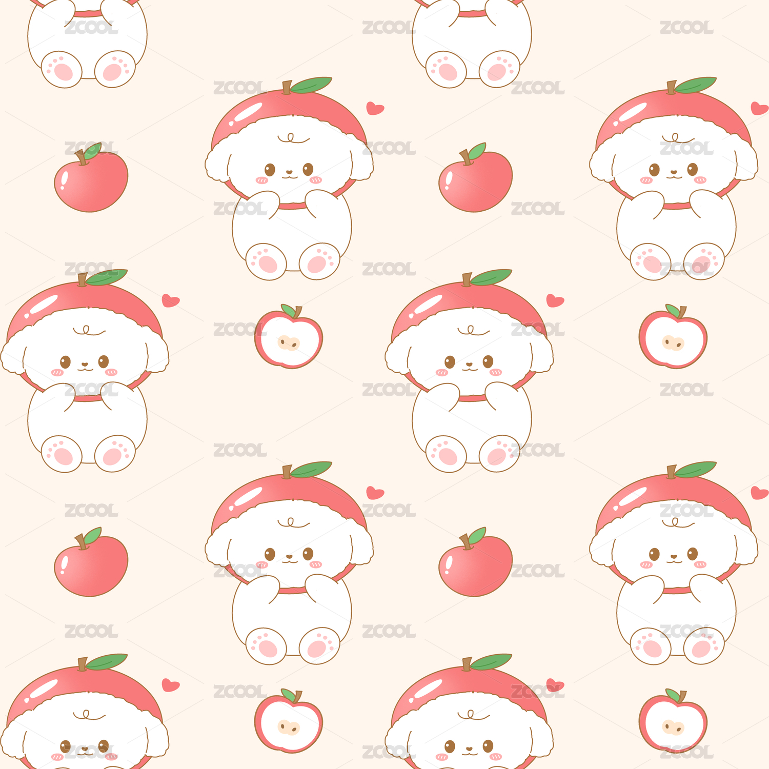 苹果与小狗四方连续图案
