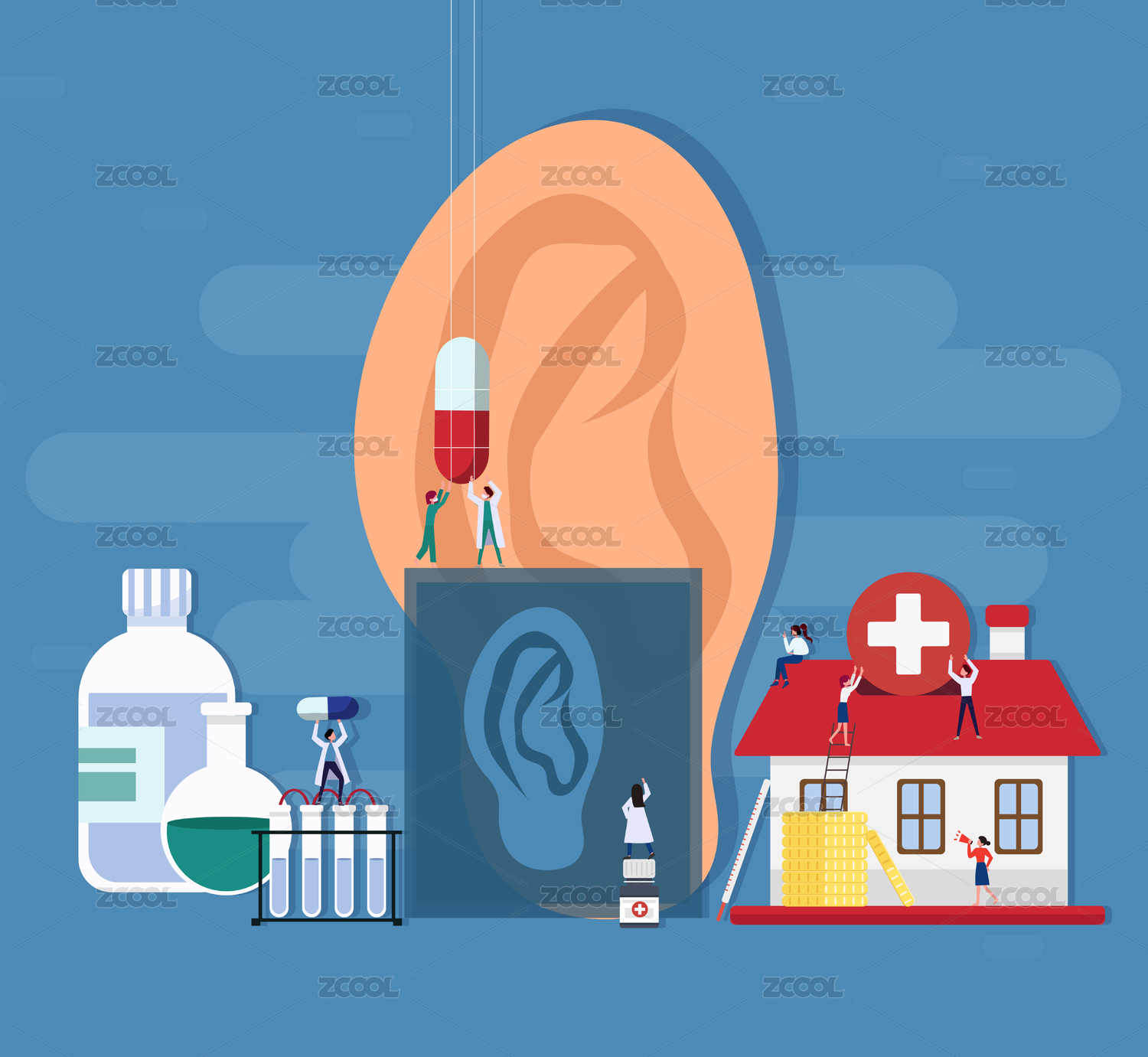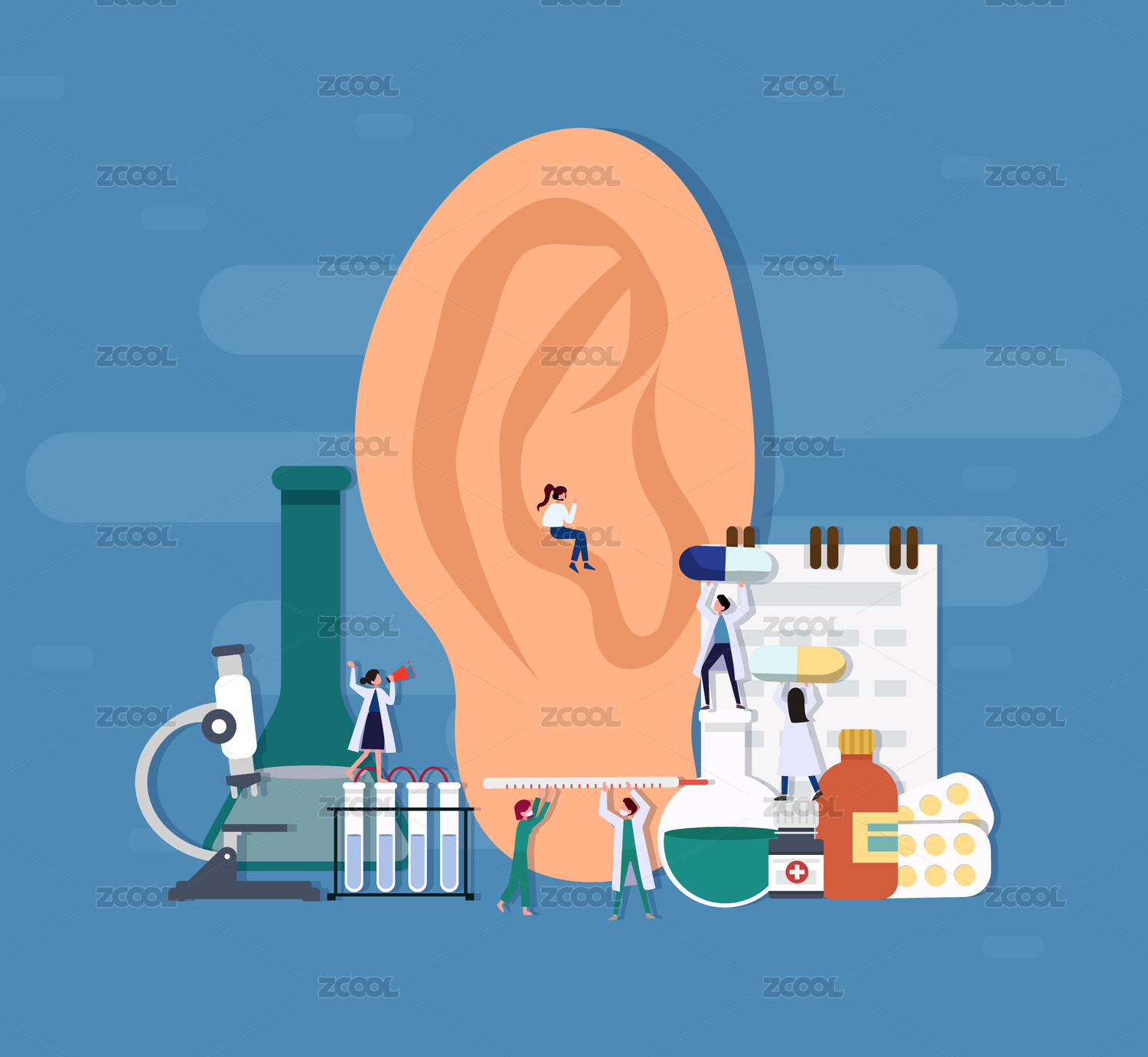 爱耳日耳朵健康医疗概念矢量图
