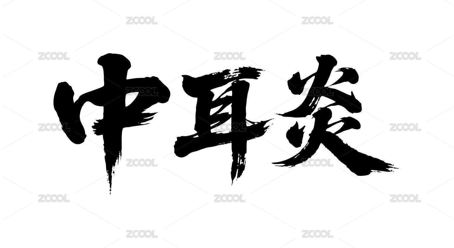 中耳炎矢量书法手写毛笔字