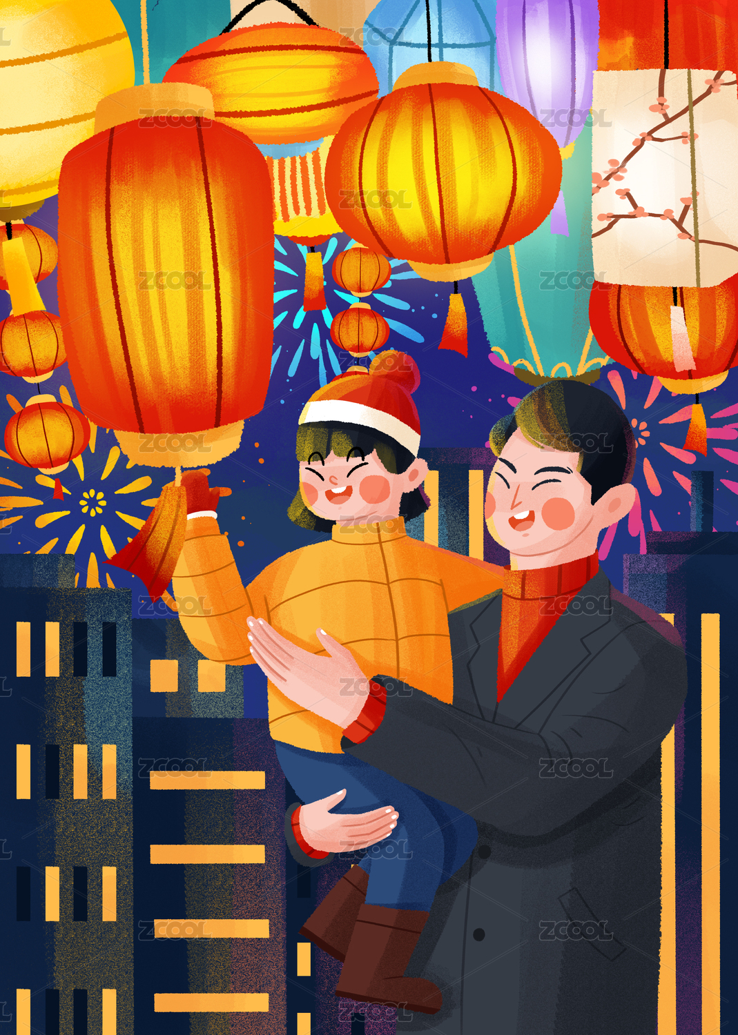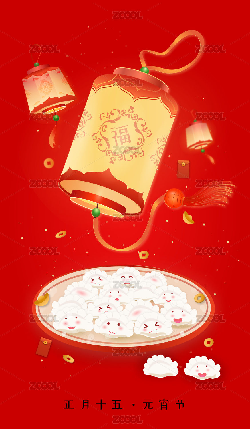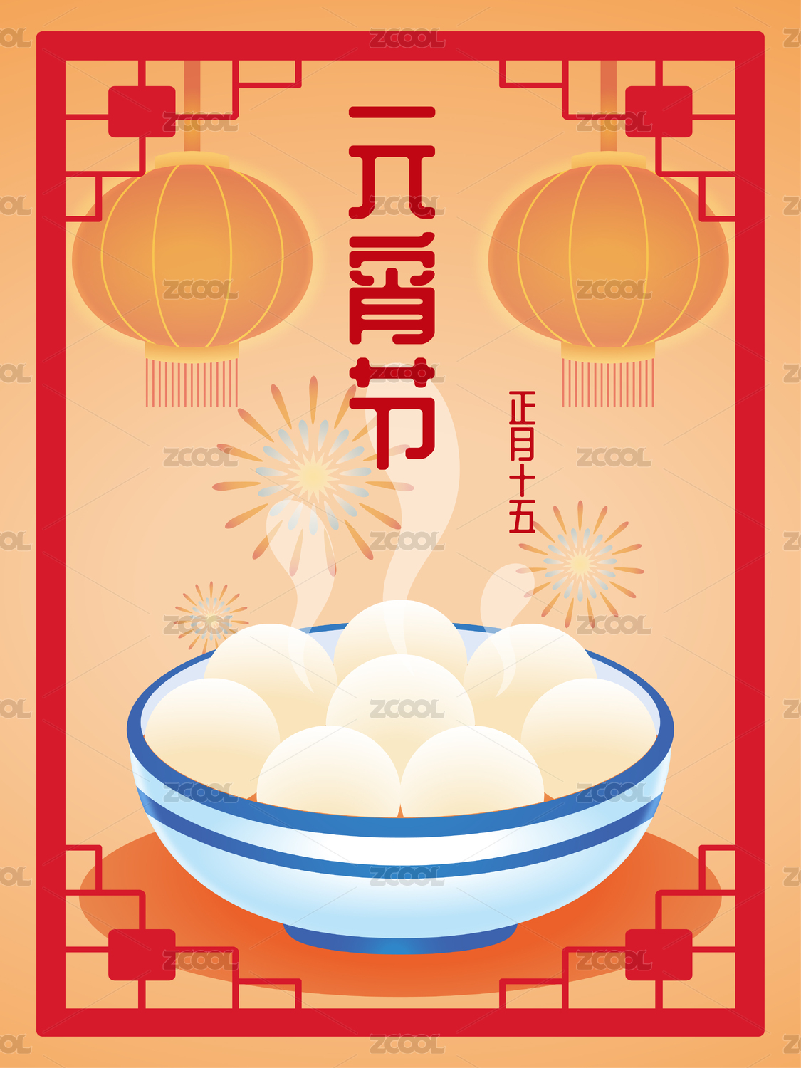 正月十五灯会吃汤圆过元宵节矢量海报素材