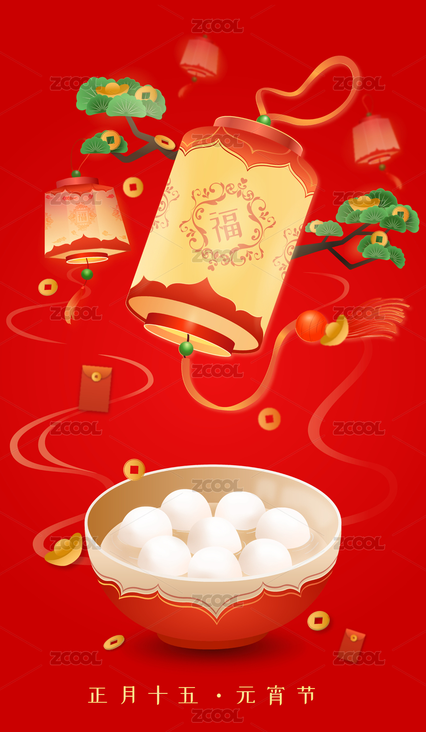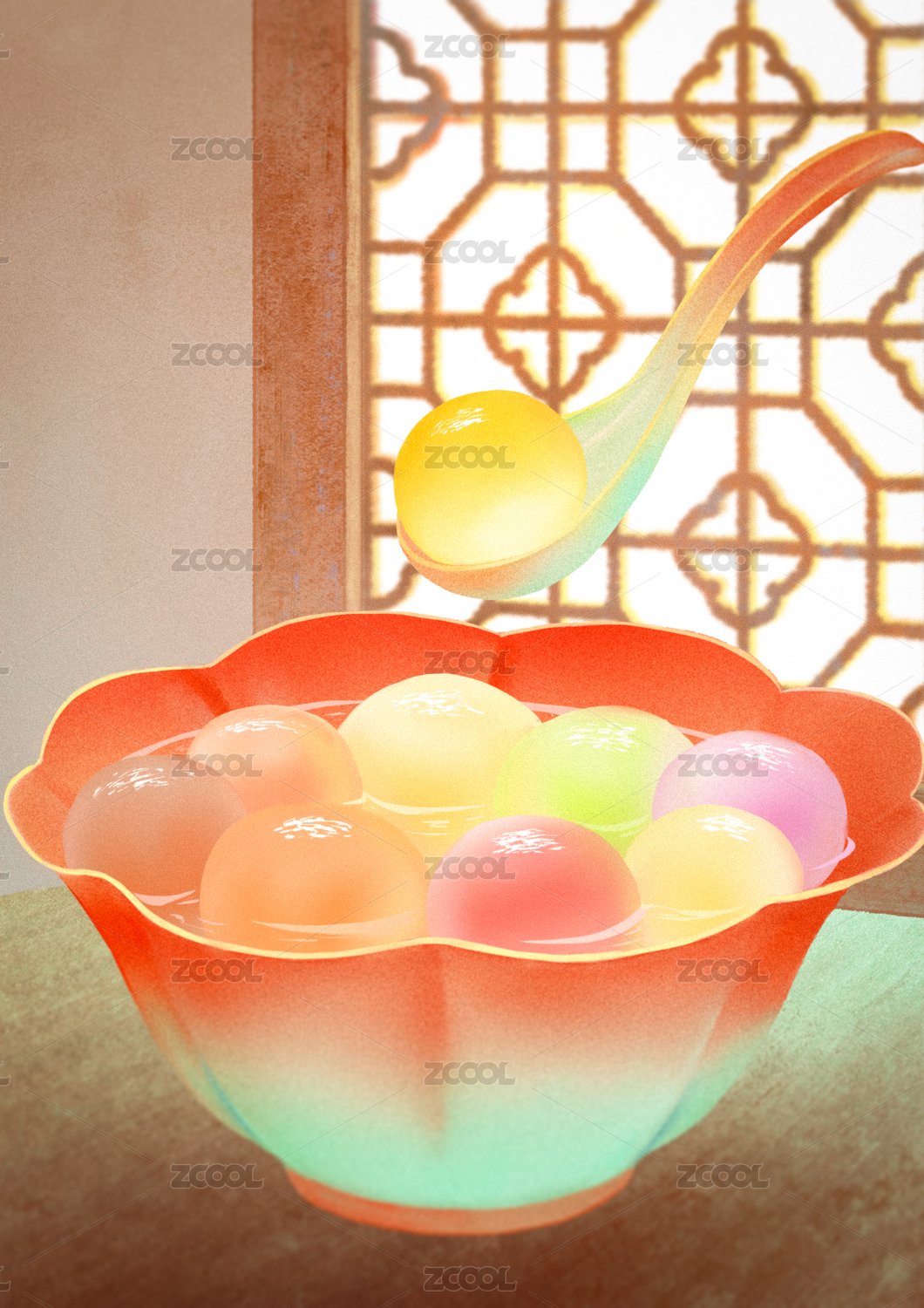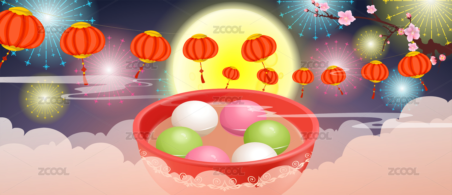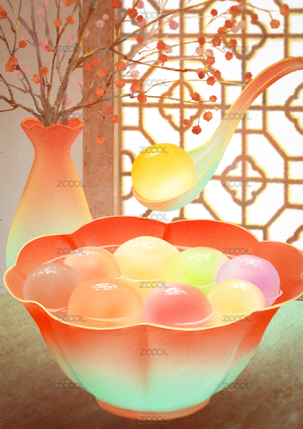 正月十五元宵节春节食物食品元宵汤圆发财树