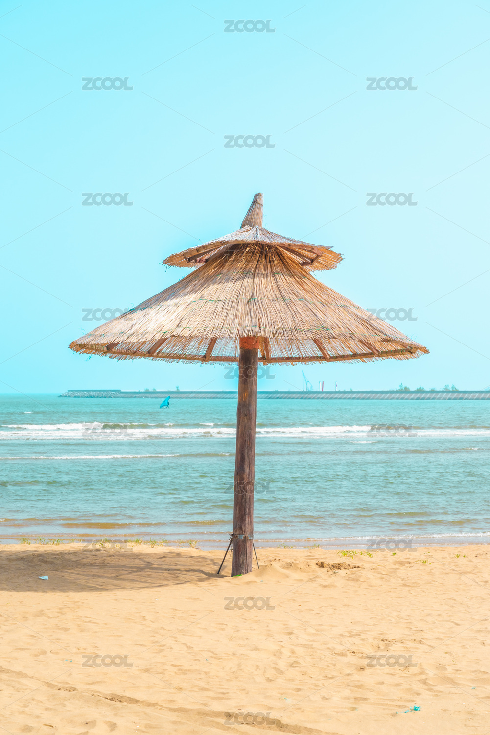 海边度假酒店的遮阳棚和天空