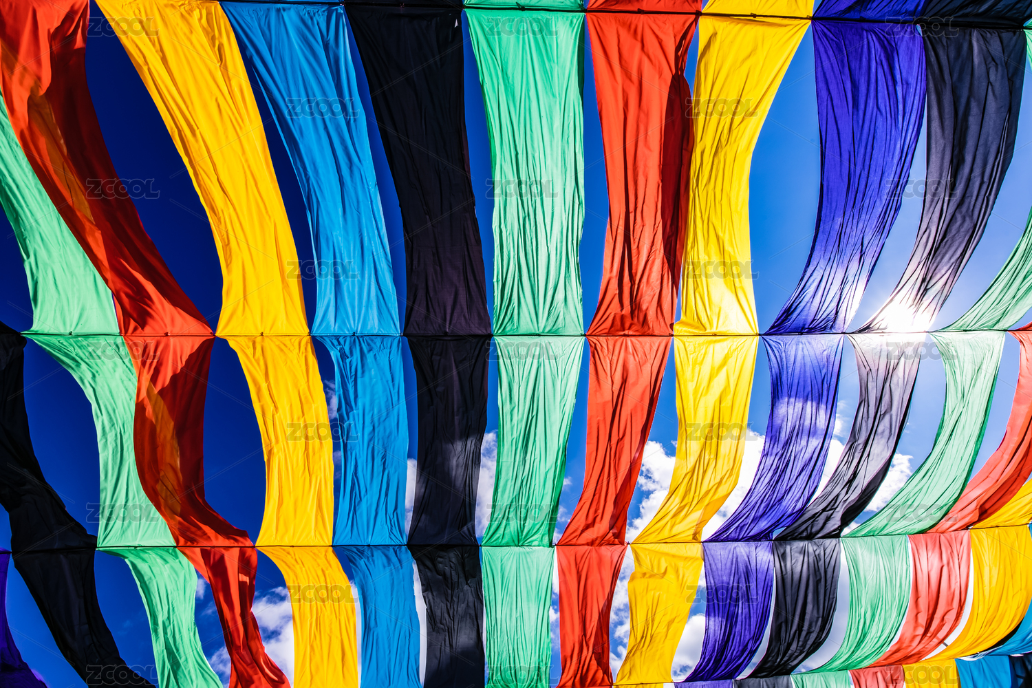 阳光直射七彩绸布遮阳棚装饰建筑
