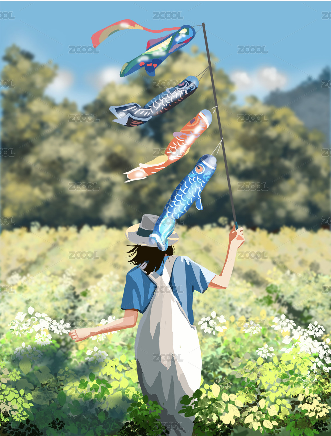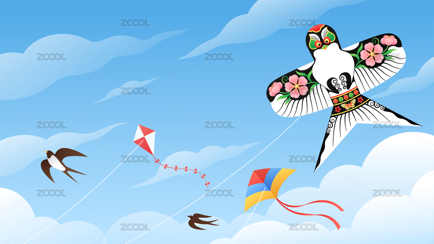 天空中的风筝插画横版