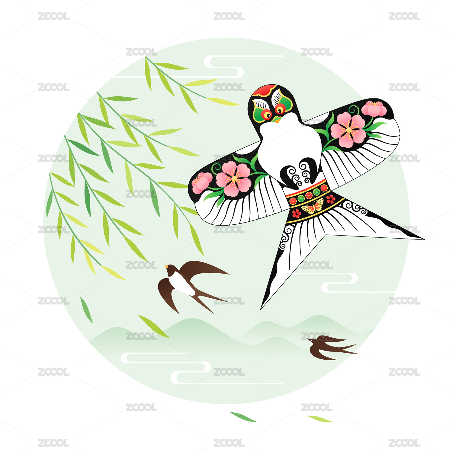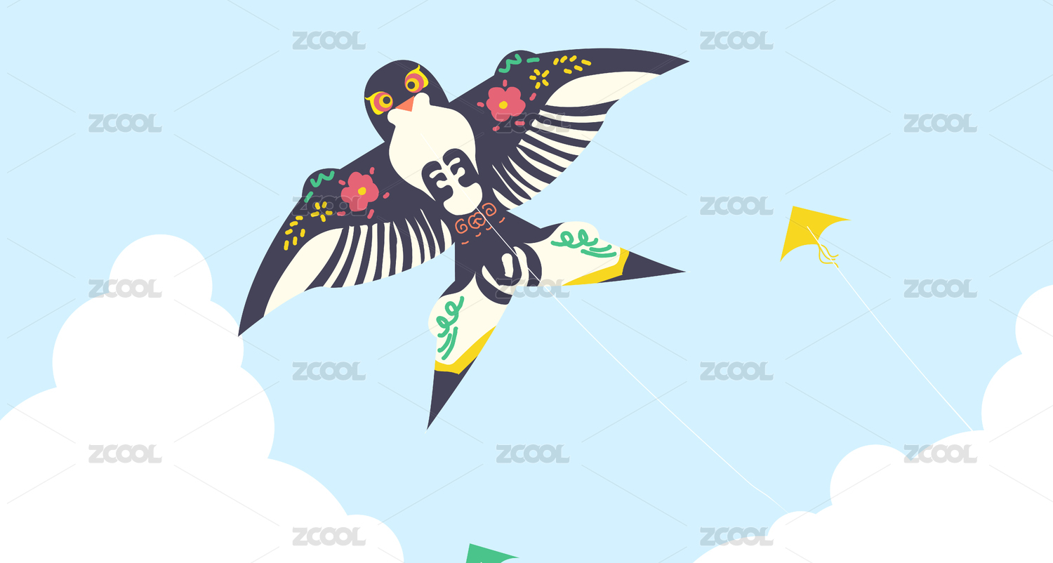 风筝和柳叶燕子插画