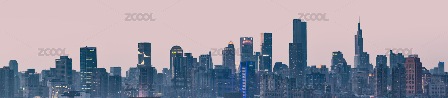 中国江苏南京城市高楼天际线夜景长图