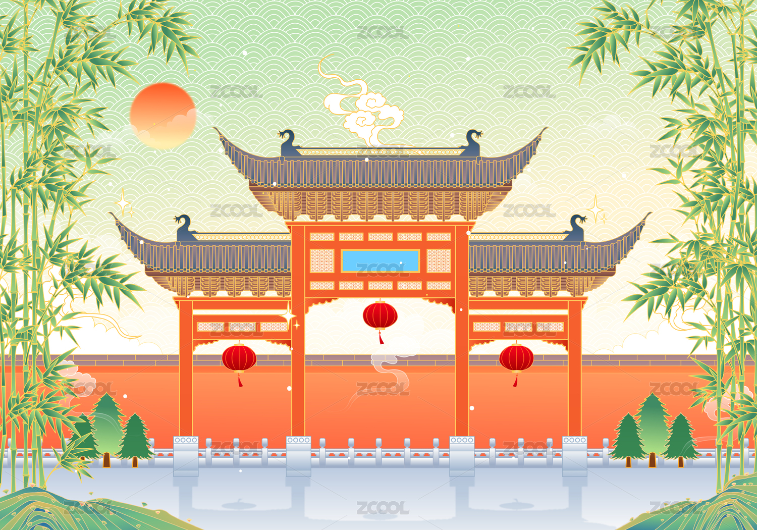 国风南京地标建筑矢量插画