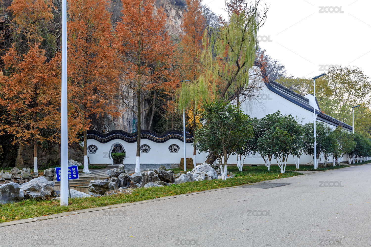 中国江苏省南京市长江观音景区白墙灰瓦江南建筑