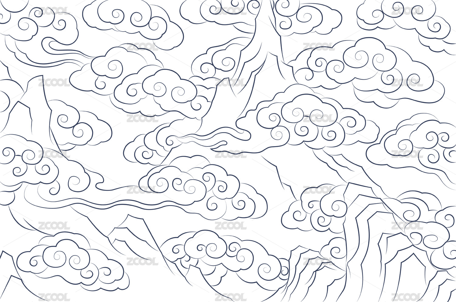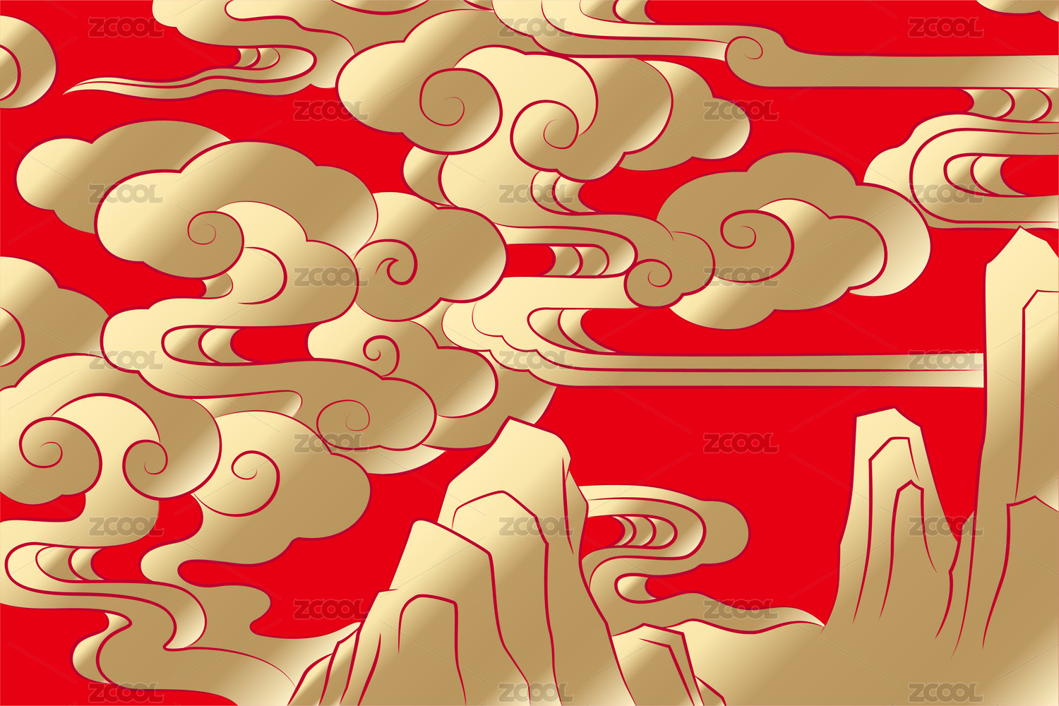 国风国潮祥云山石青松如意免抠矢量插画元素