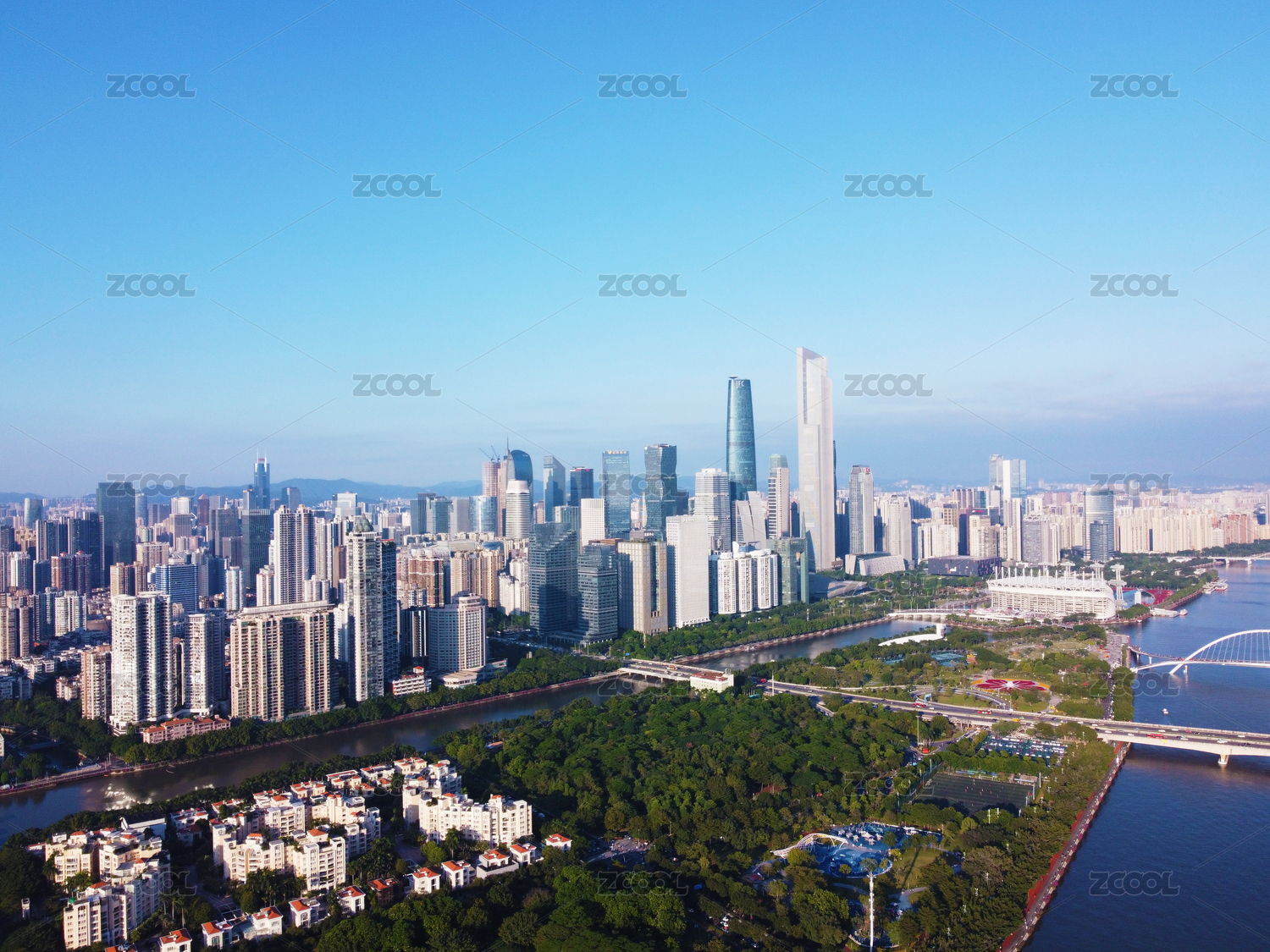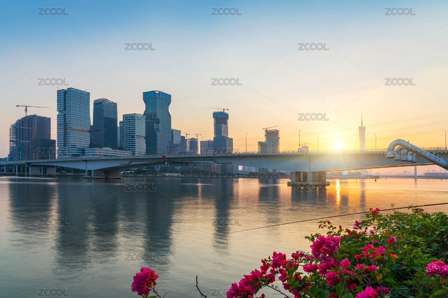中国广东省广州市城市建筑和桥梁和珠江风光
