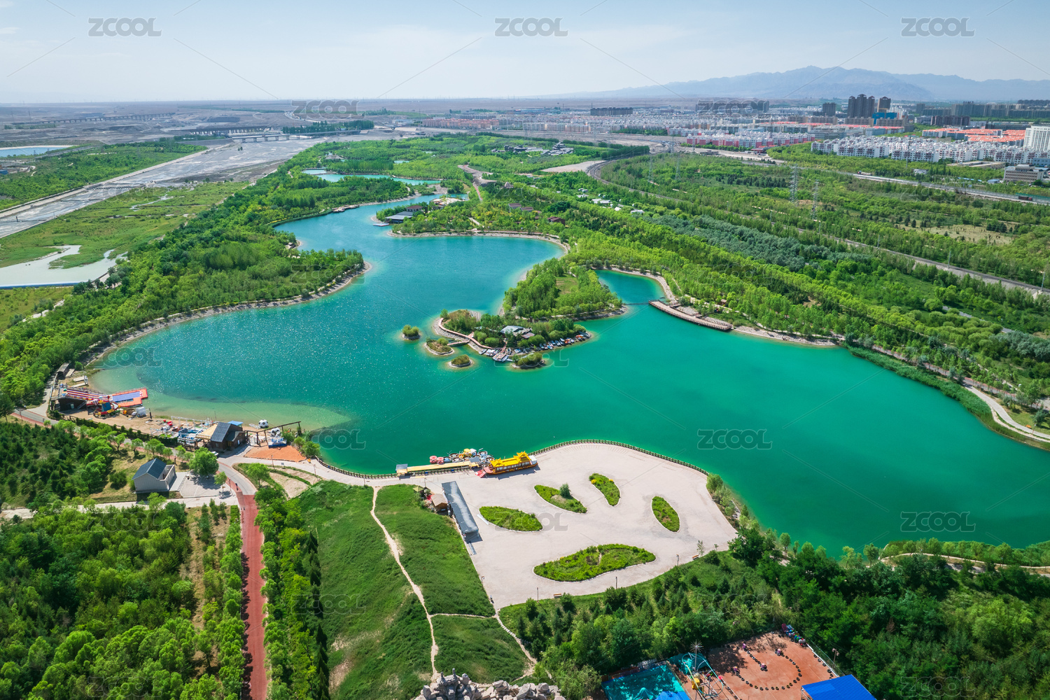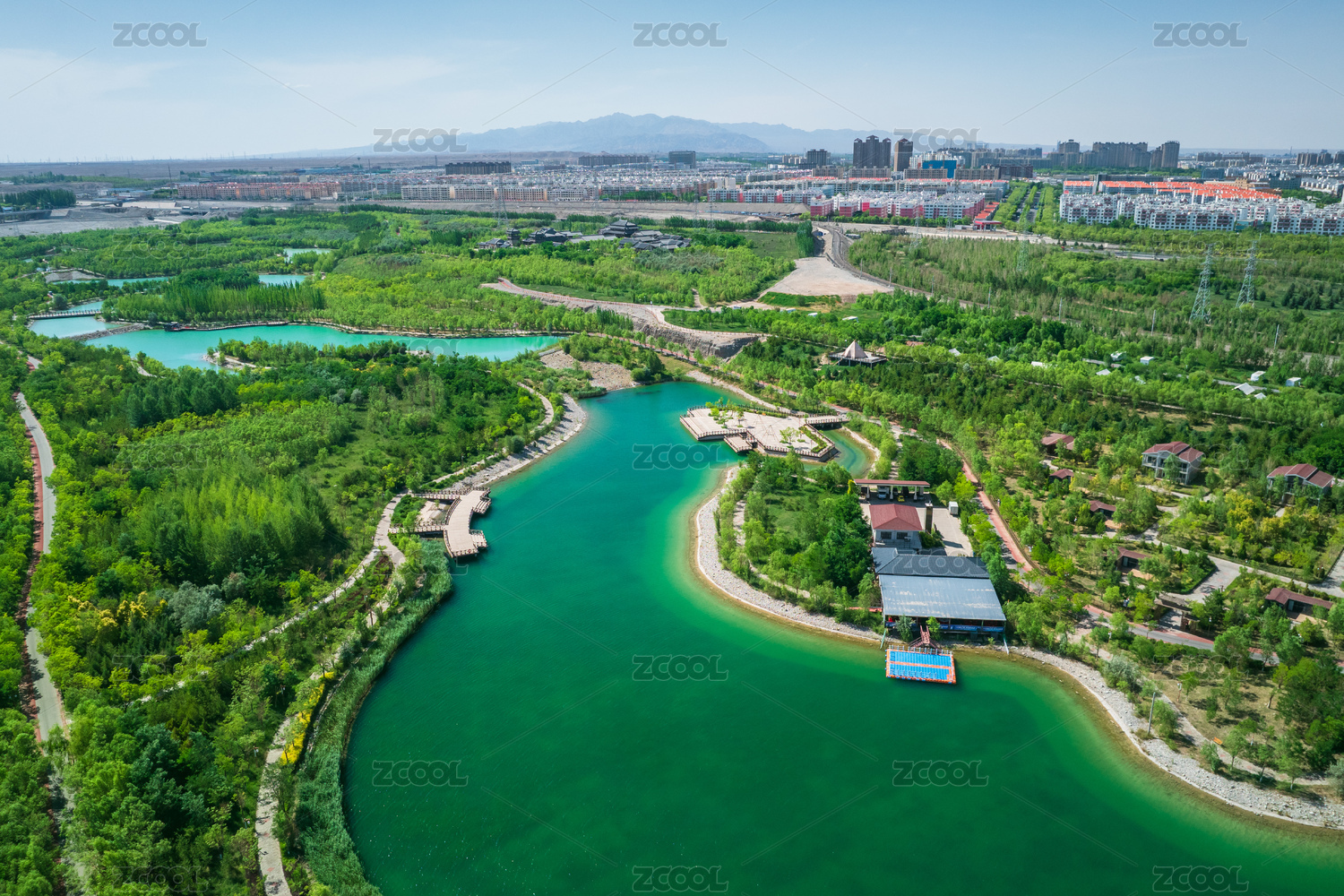 甘肃嘉峪关市南湖文化生态园航拍城市风光