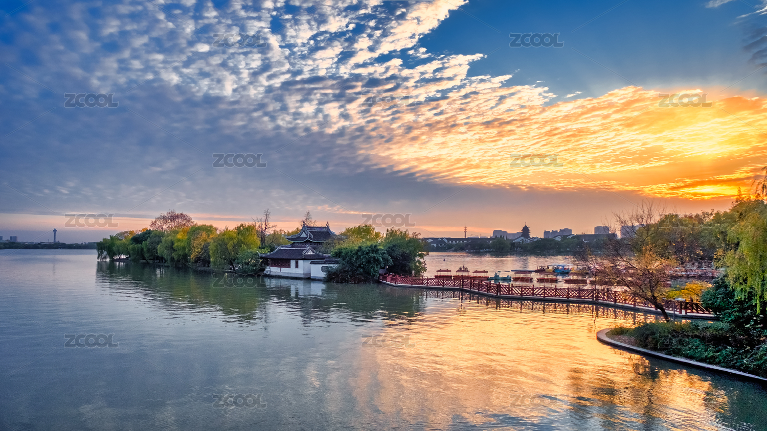 中国浙江嘉兴南湖建筑,园林,公园景观风光