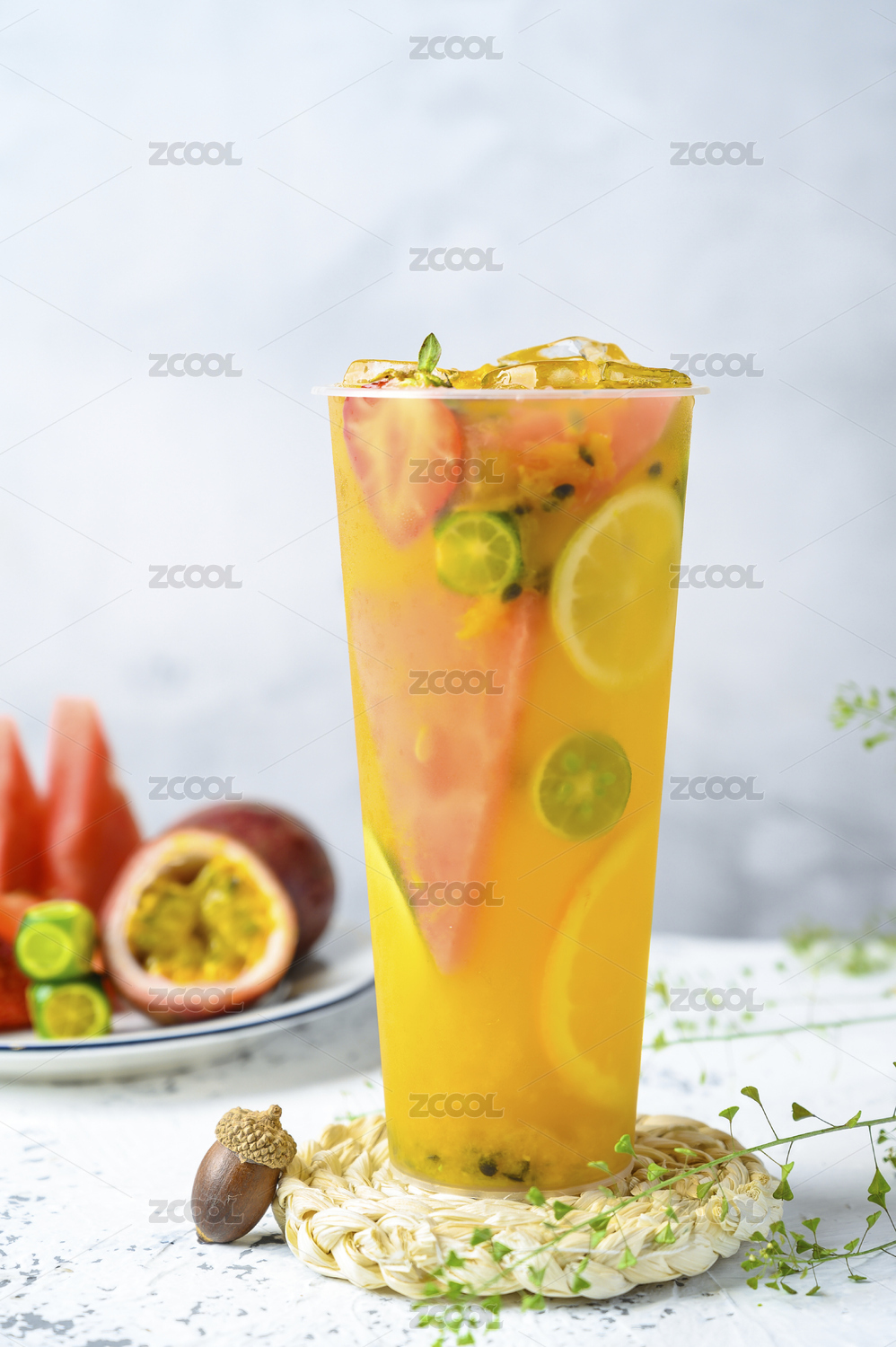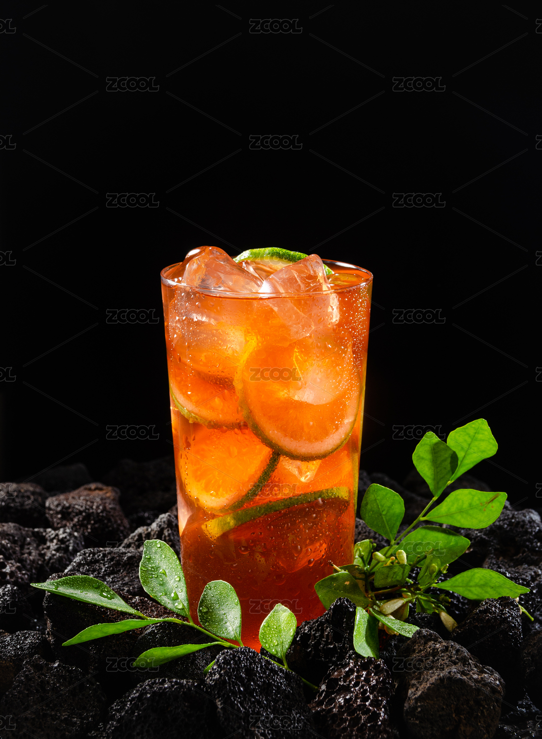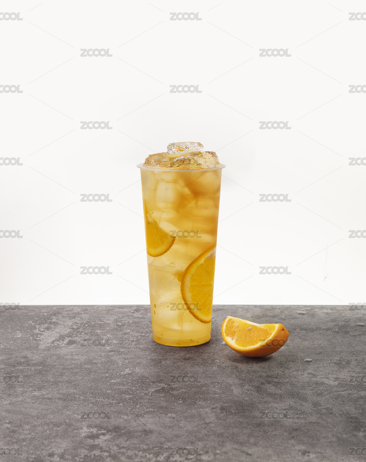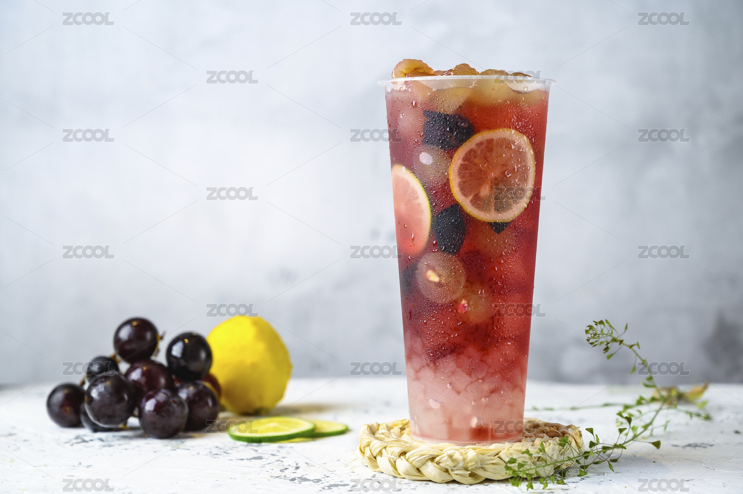 一杯冰冻的柠檬茶水果茶放在绿色背景里