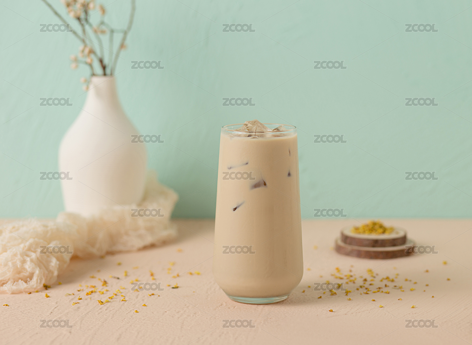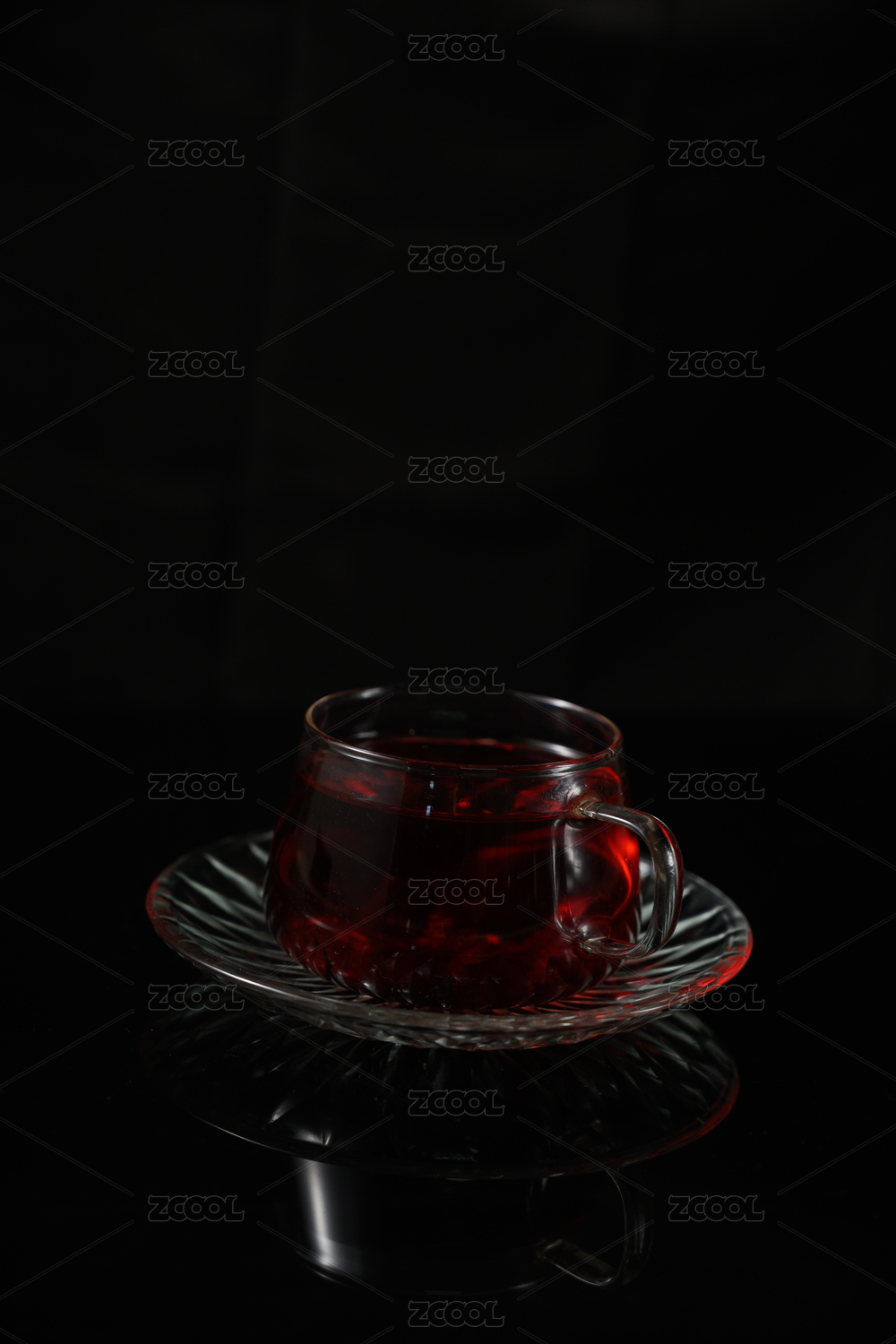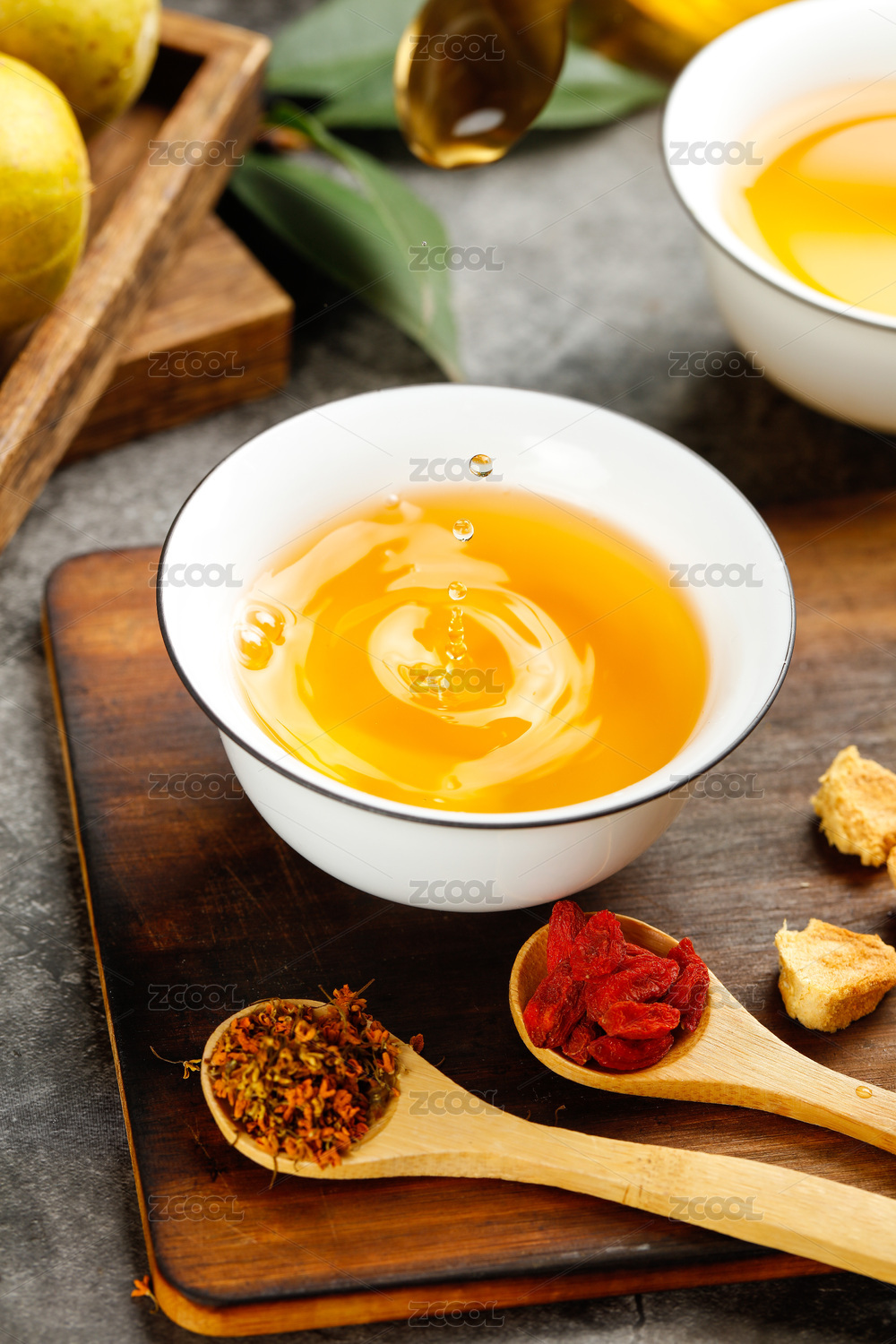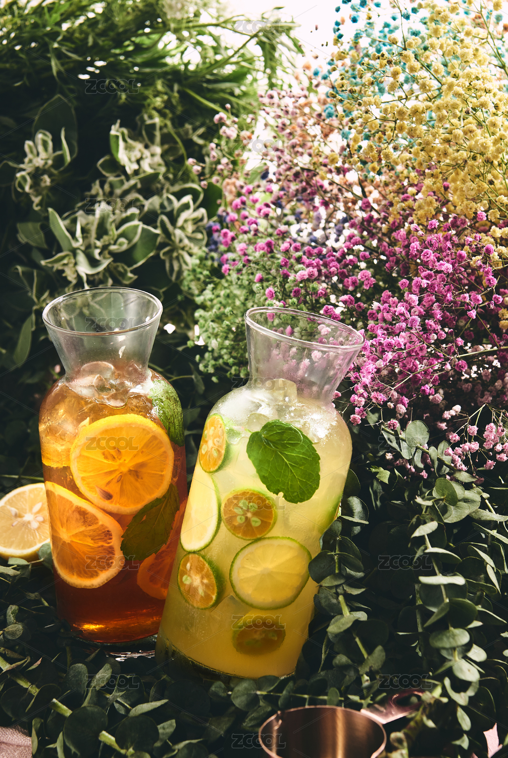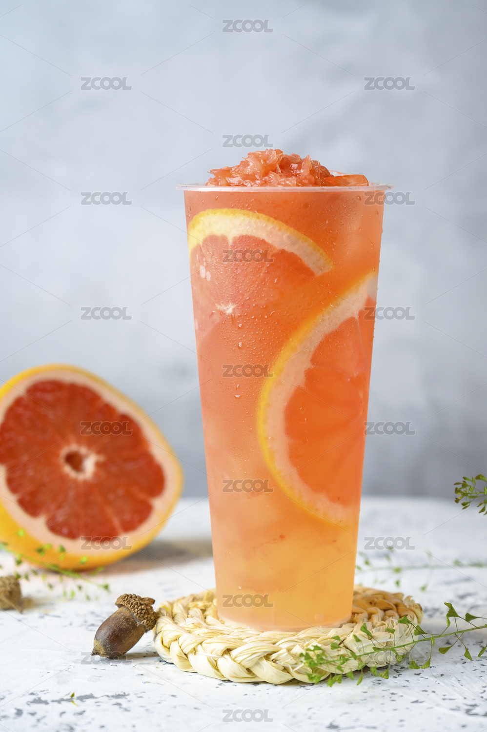 一杯冰冻的柠檬茶水果茶放在绿色背景里