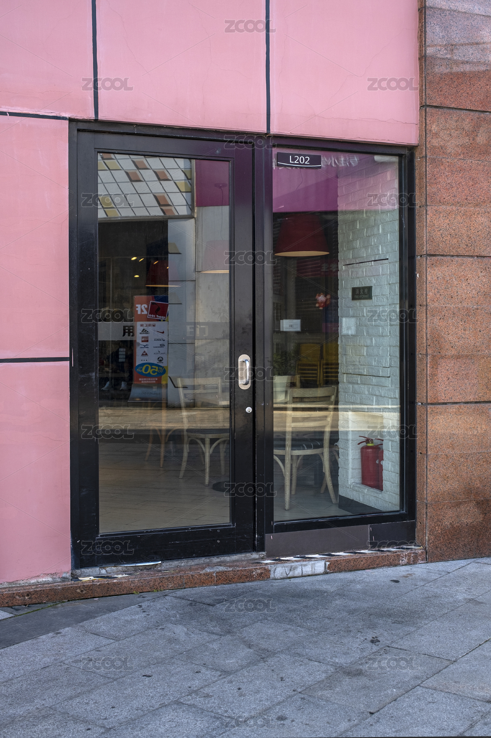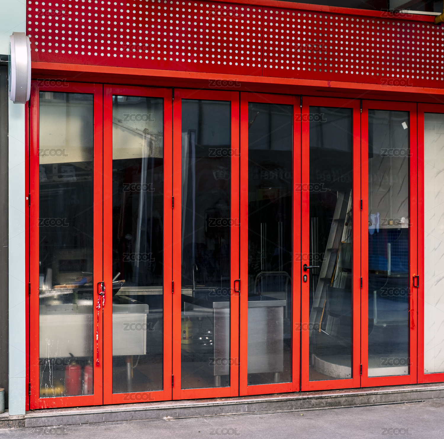 城市商铺的红色玻璃门