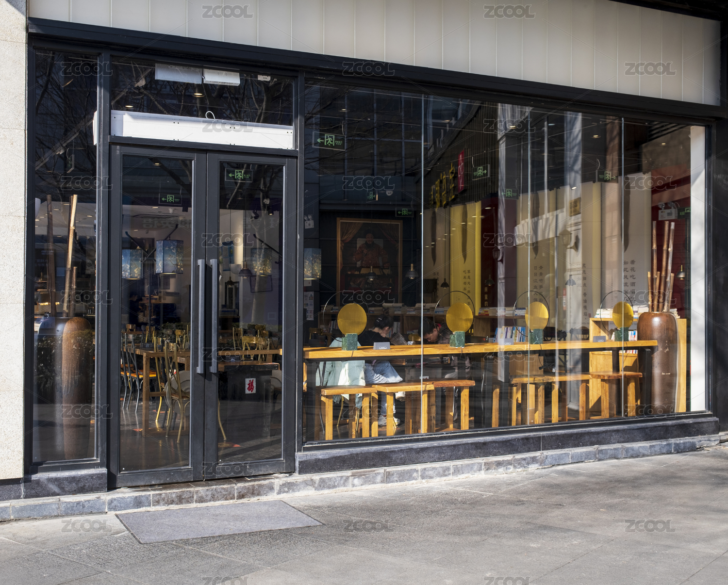 城市街道餐饮店玻璃门窗