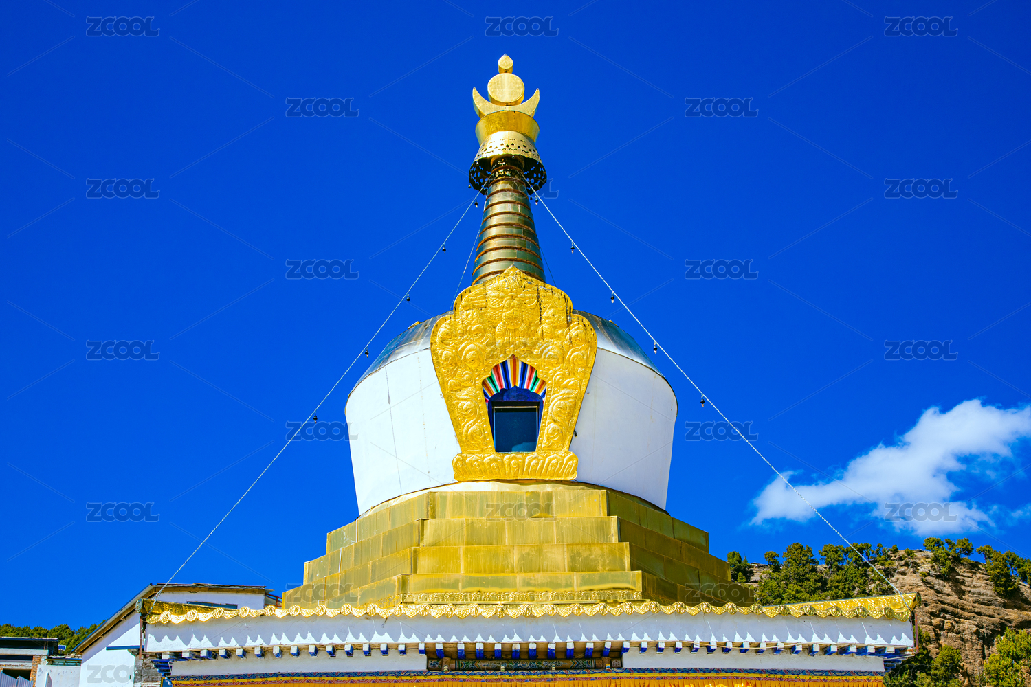 四川省阿坝州郎木寺-蓝天白云下的寺庙建筑