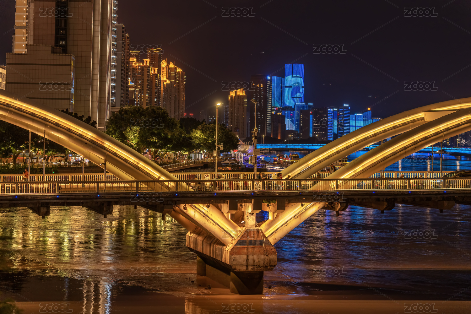 福州闽江北岸中洲岛城市街道夜景
