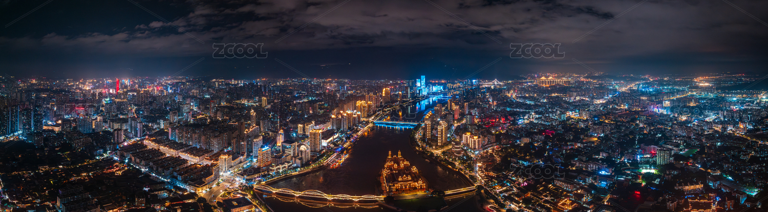 福建福州闽江中洲岛解放大桥城市夜景航拍