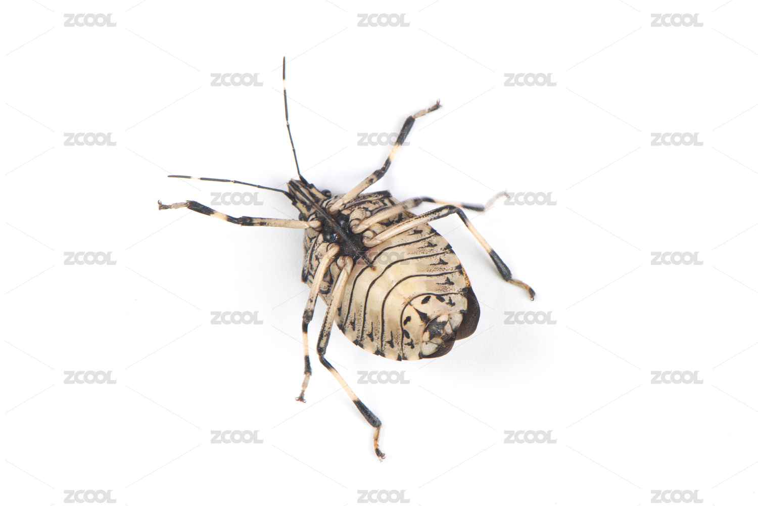 白色背景上的一只背过去的放屁虫