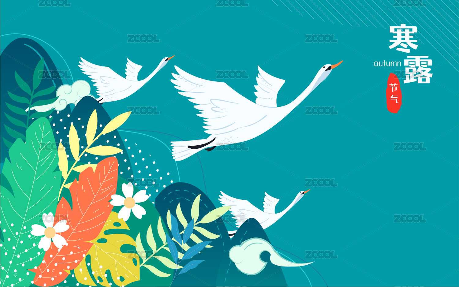 寒露节气插画秋天天鹅飞翔秋季鸟类飞行海报