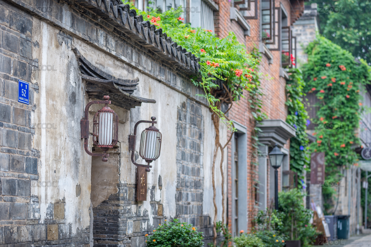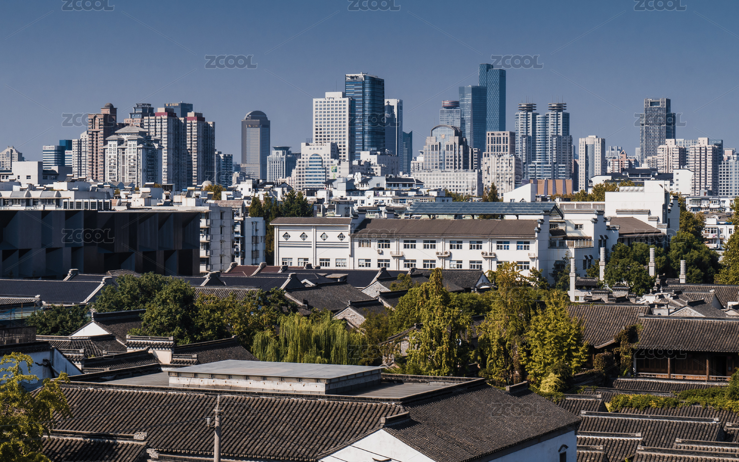 中国江苏南京市秦淮区老门东街区与城市天际线