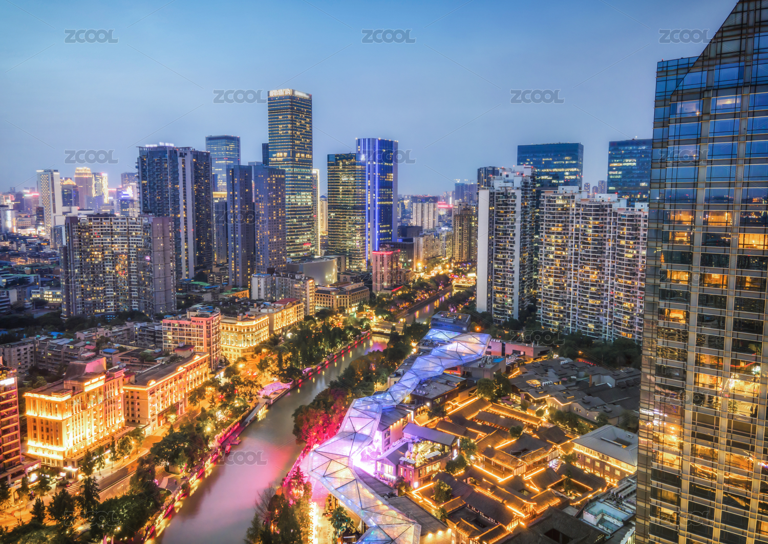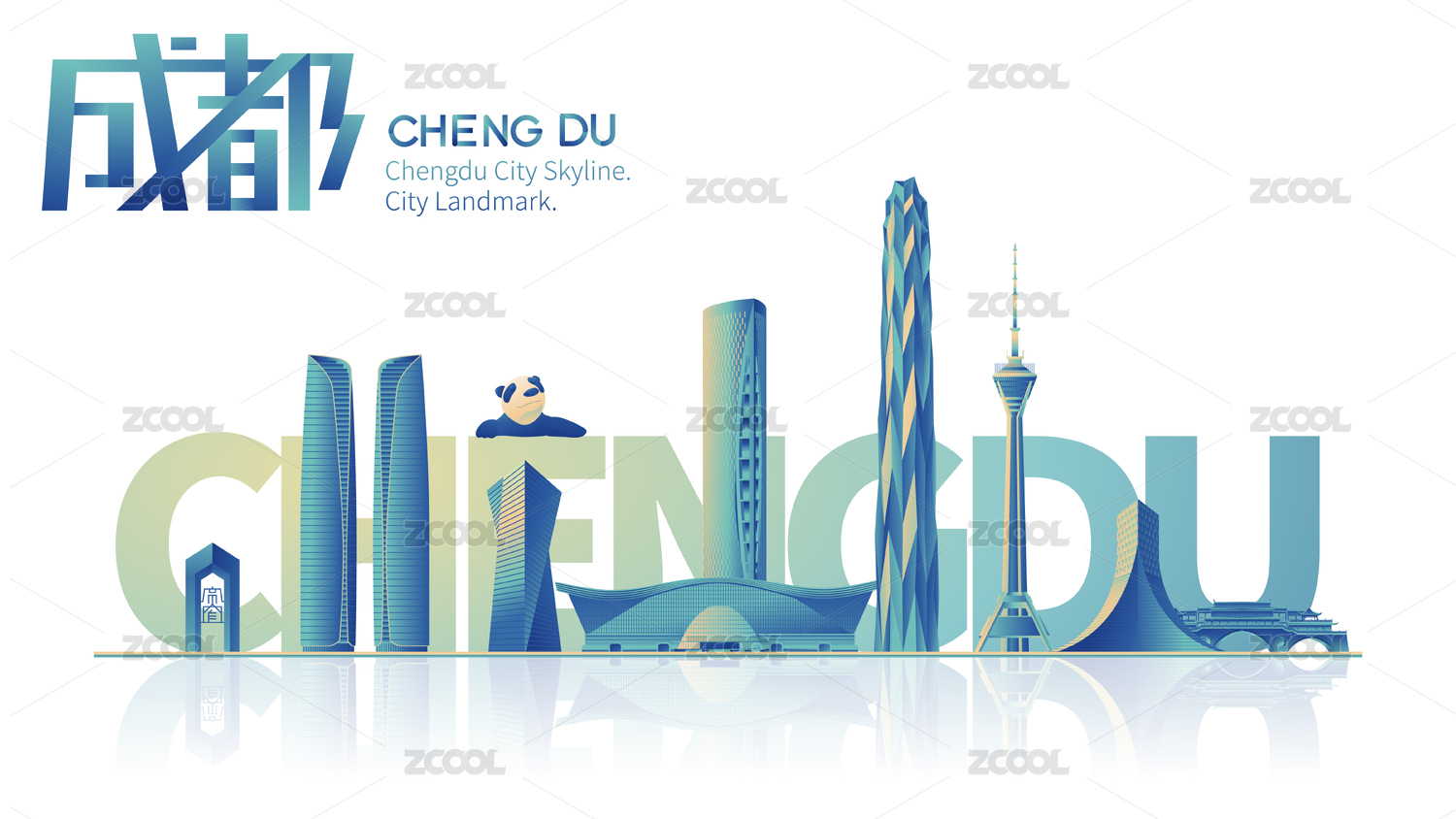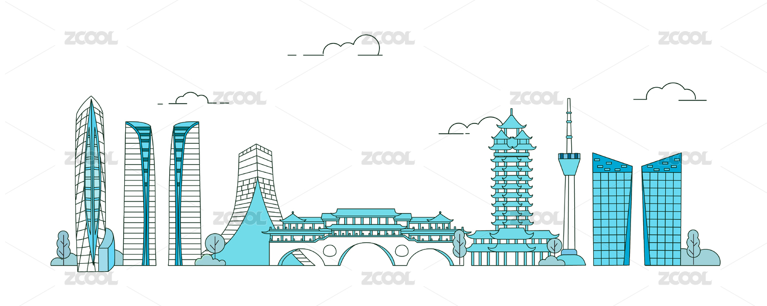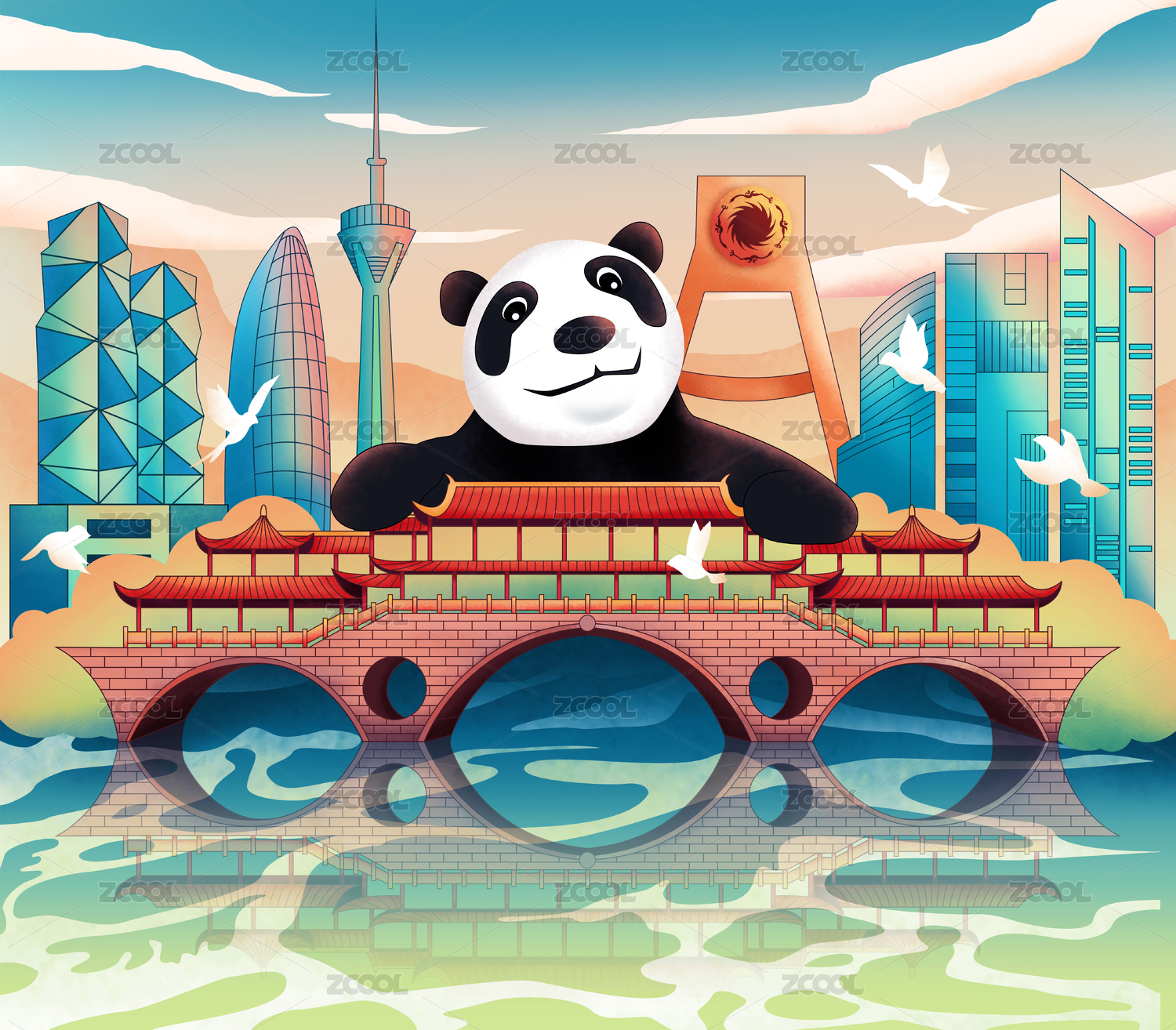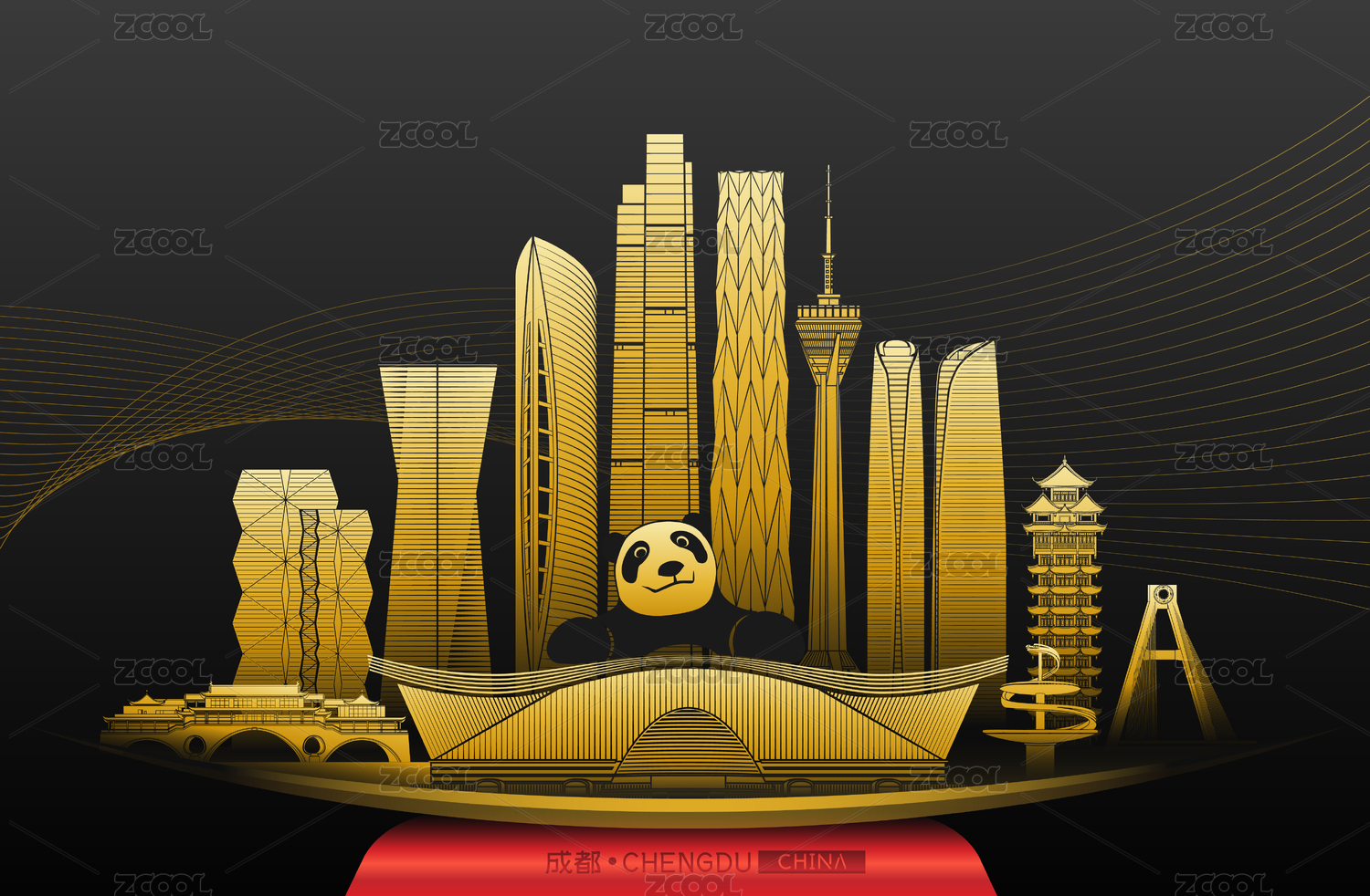 成都城市地标建筑安顺廊桥矢量线稿印章