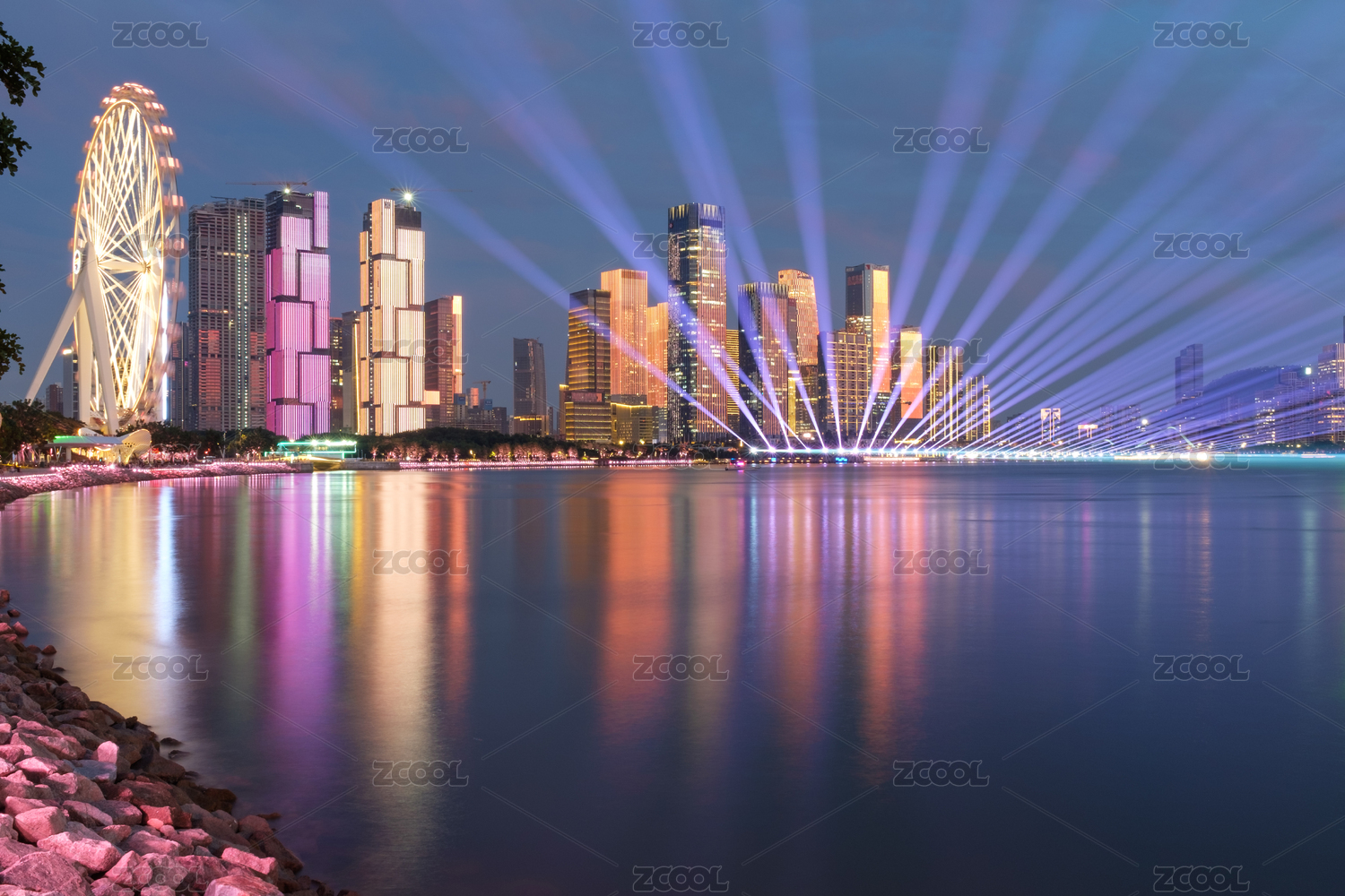 中国深圳湾人才公园地标建筑夜晚灯光秀景象