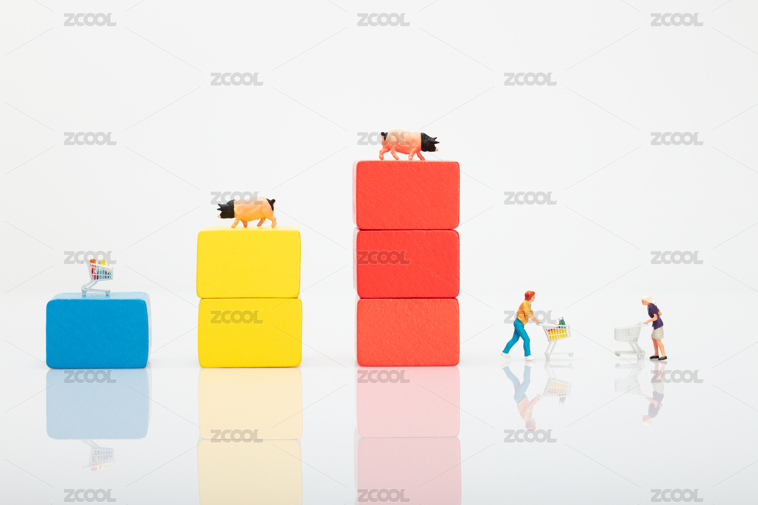 CPI消费指数彩色积木猪肉涨价生猪价格购物车消费水平