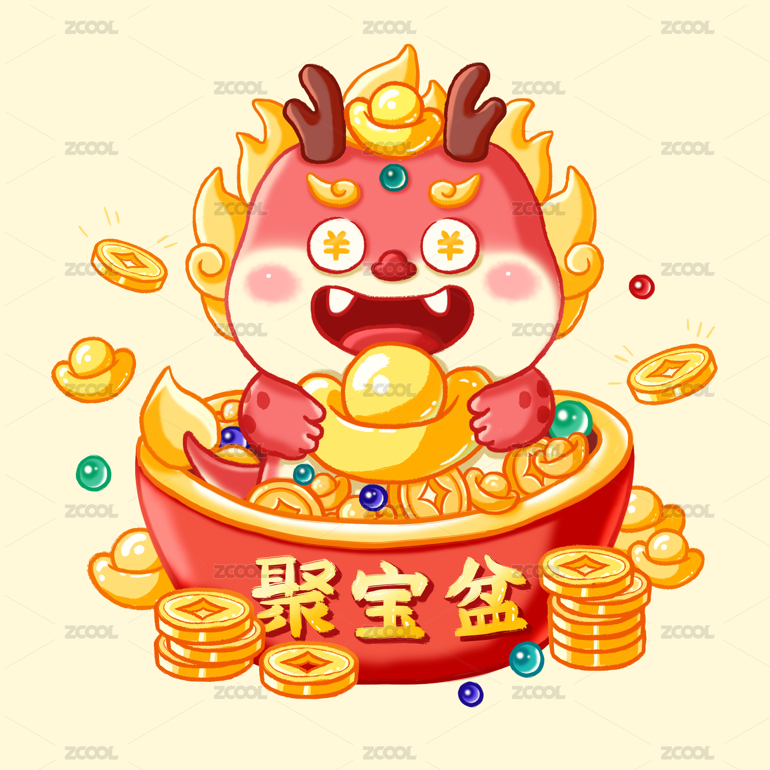 龙年插画财源广进