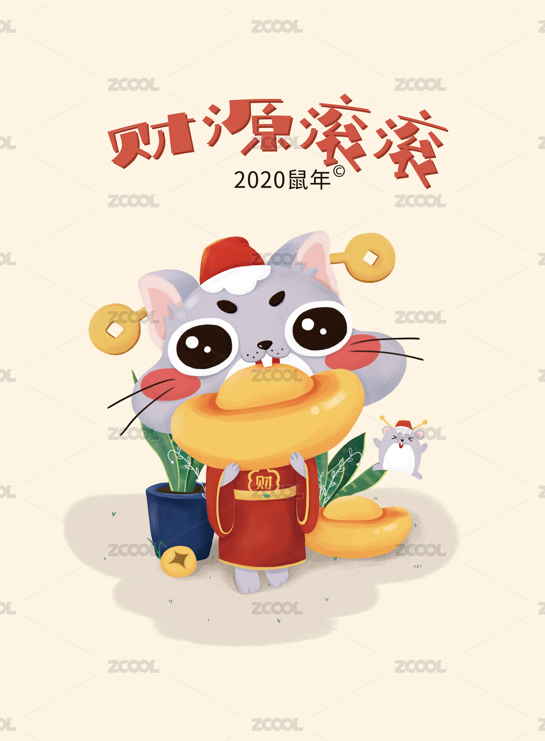 鼠年插画之财源滚滚