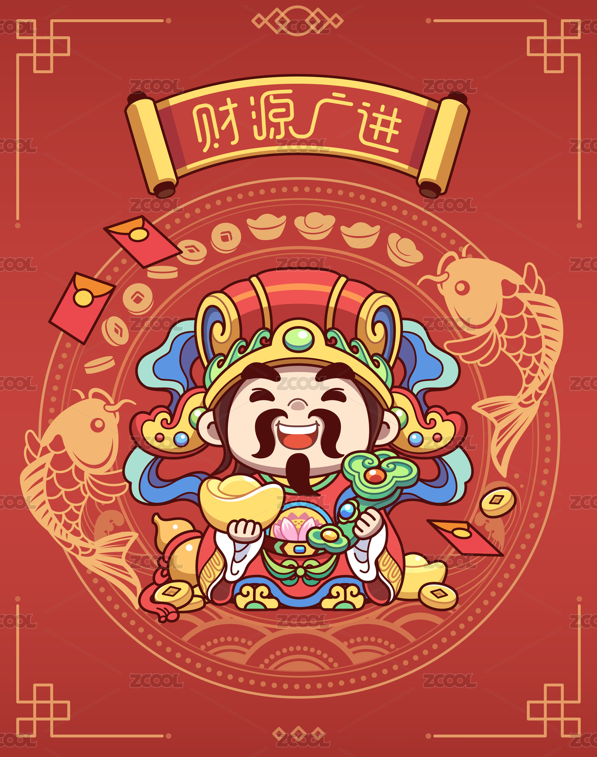 财神卡通插画设计