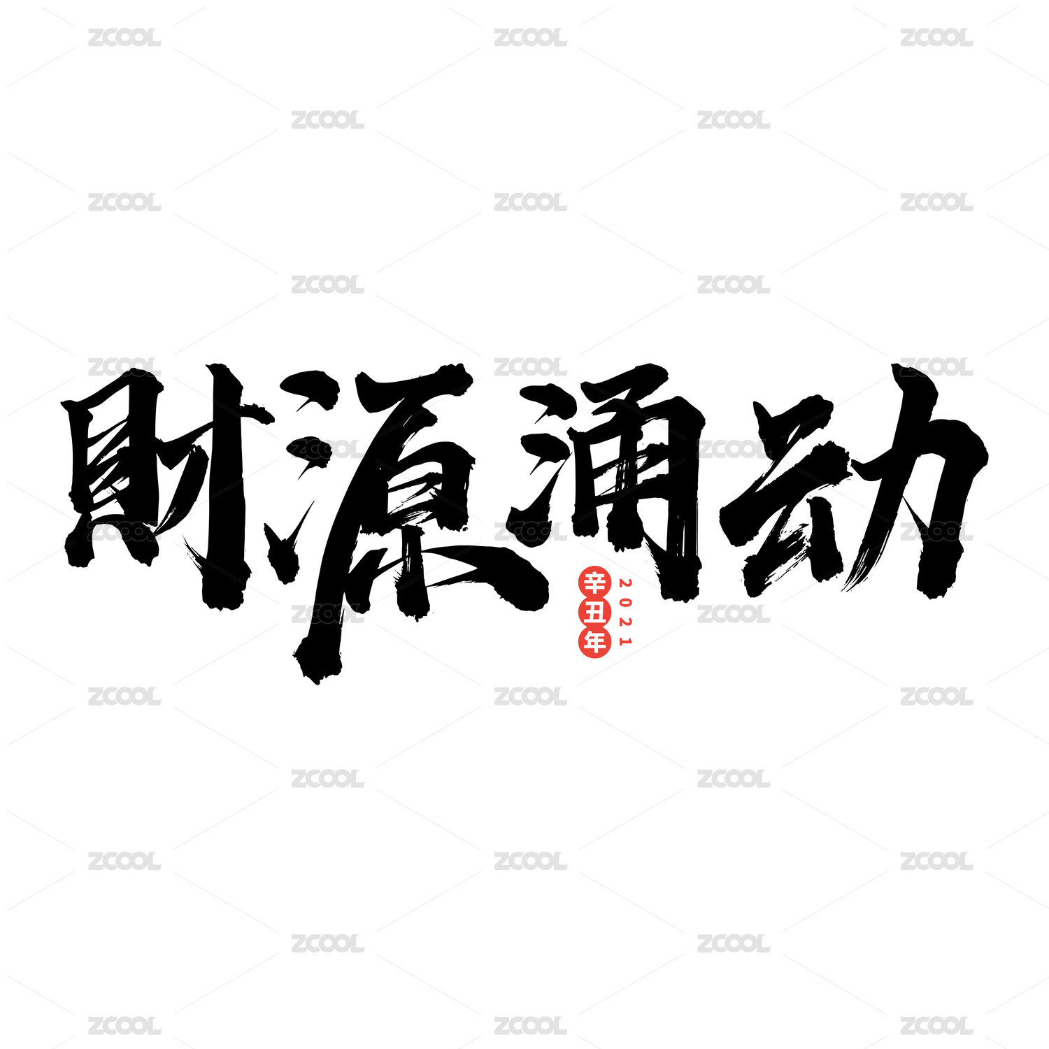 财源涌动-中文手写汉字书法字体字形中国风