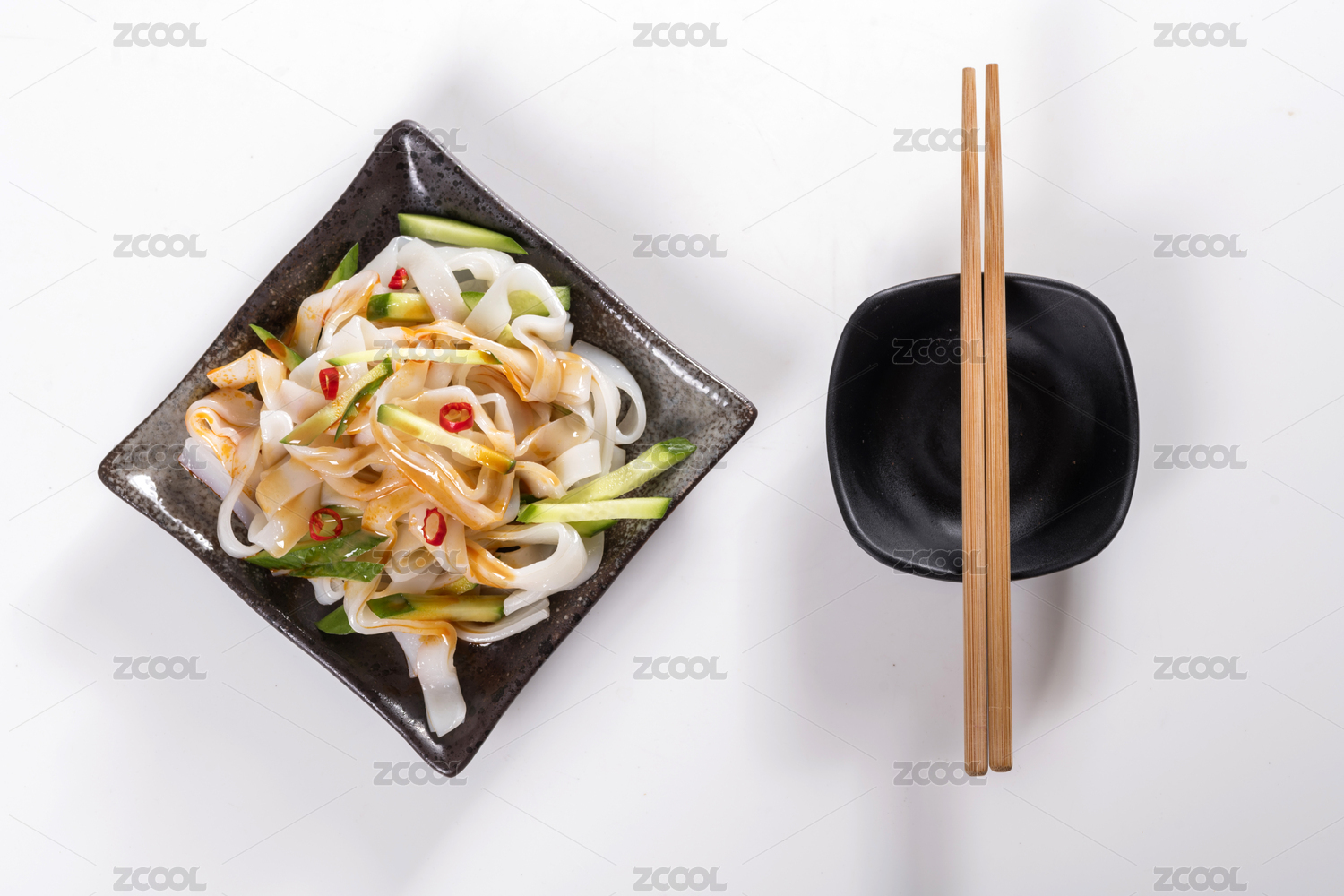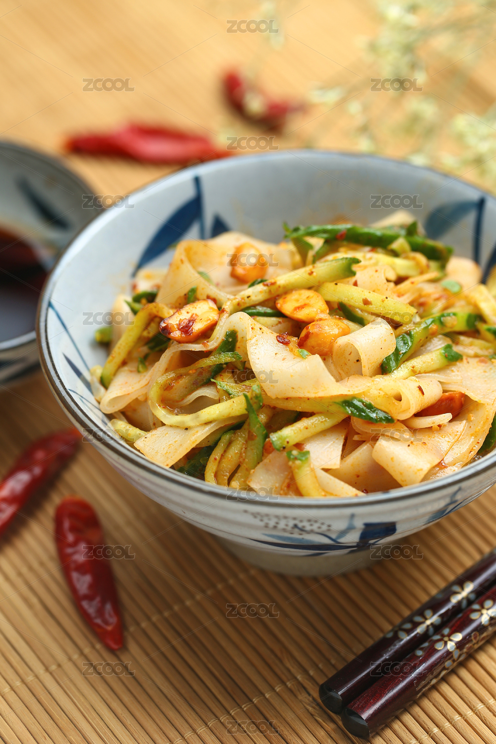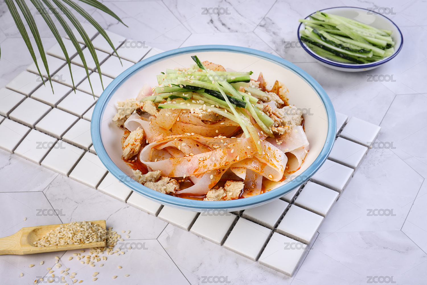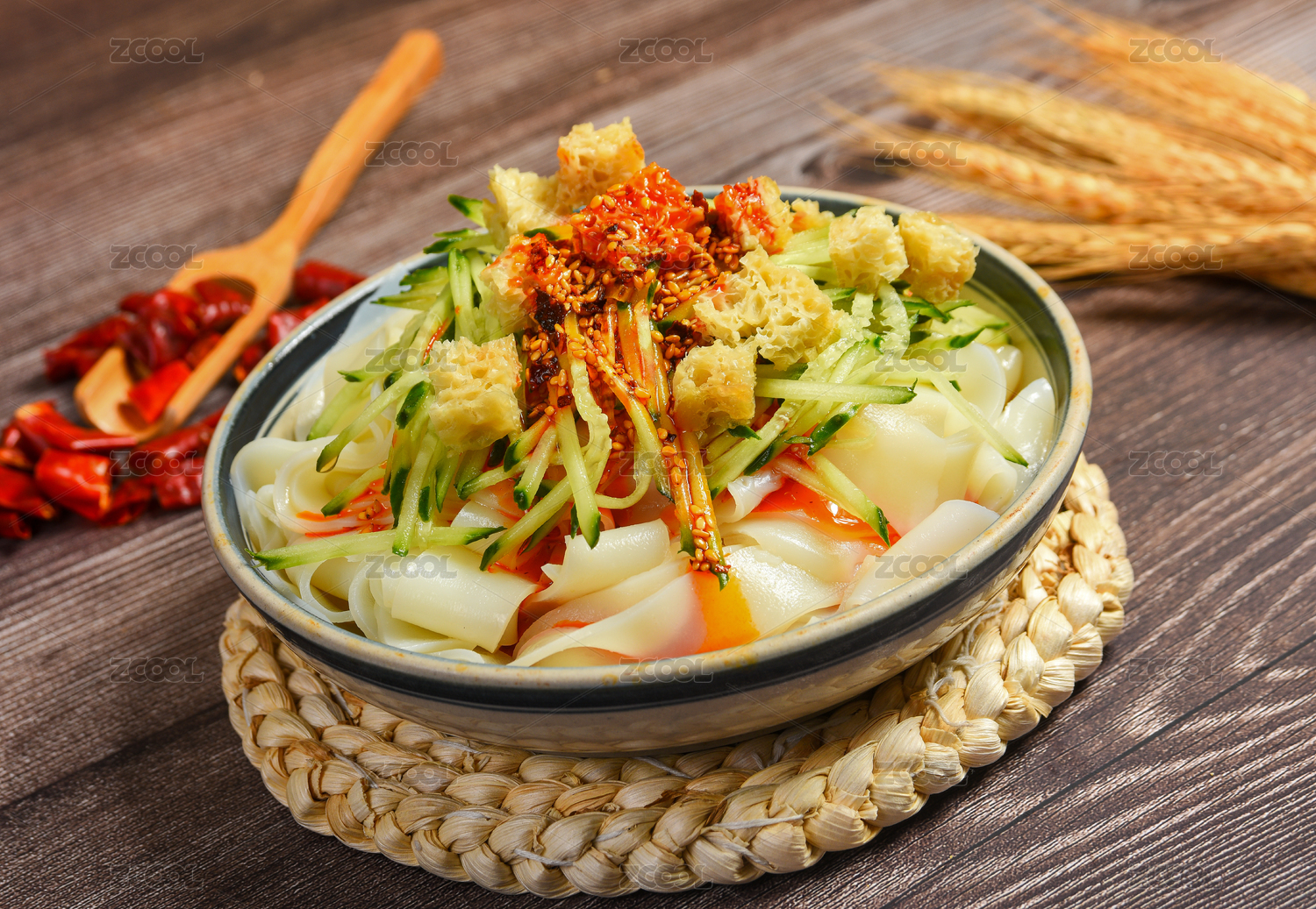 大理石背景上的陕西宝鸡擀面皮凉皮