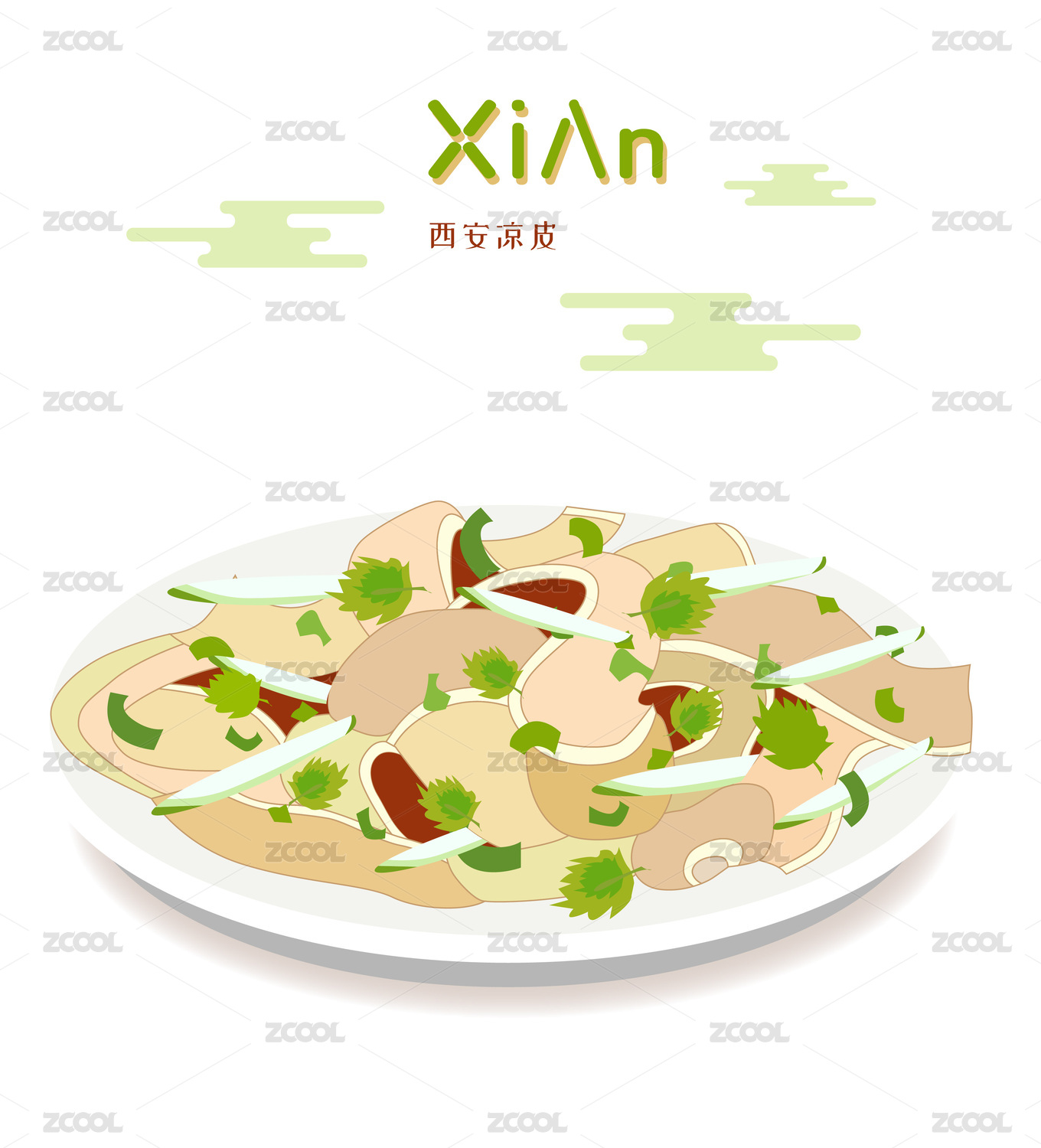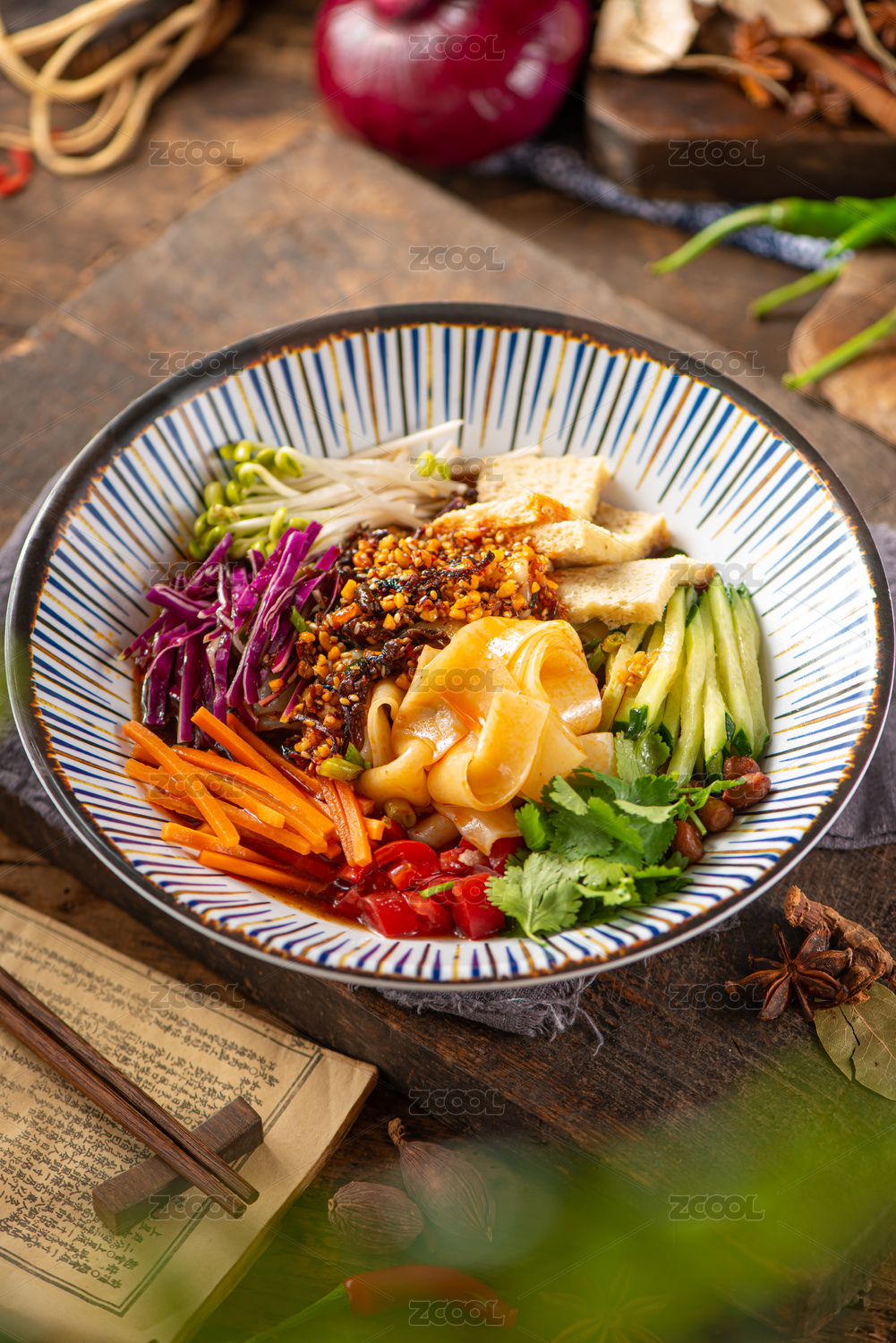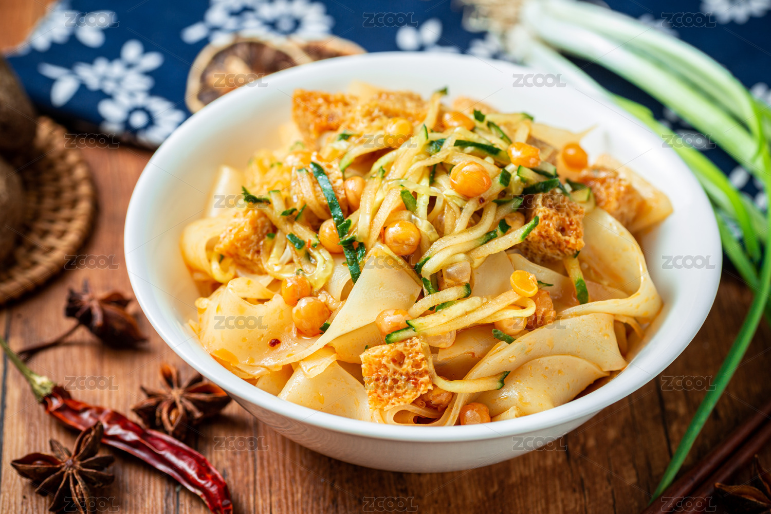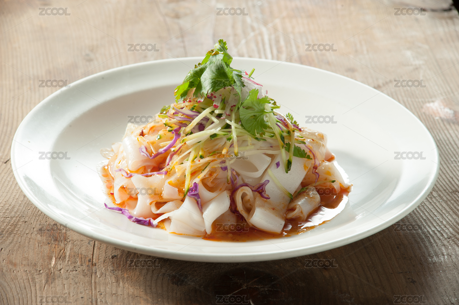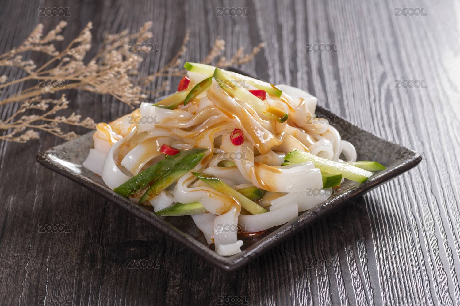 大理石背景上的陕西宝鸡擀面皮凉皮