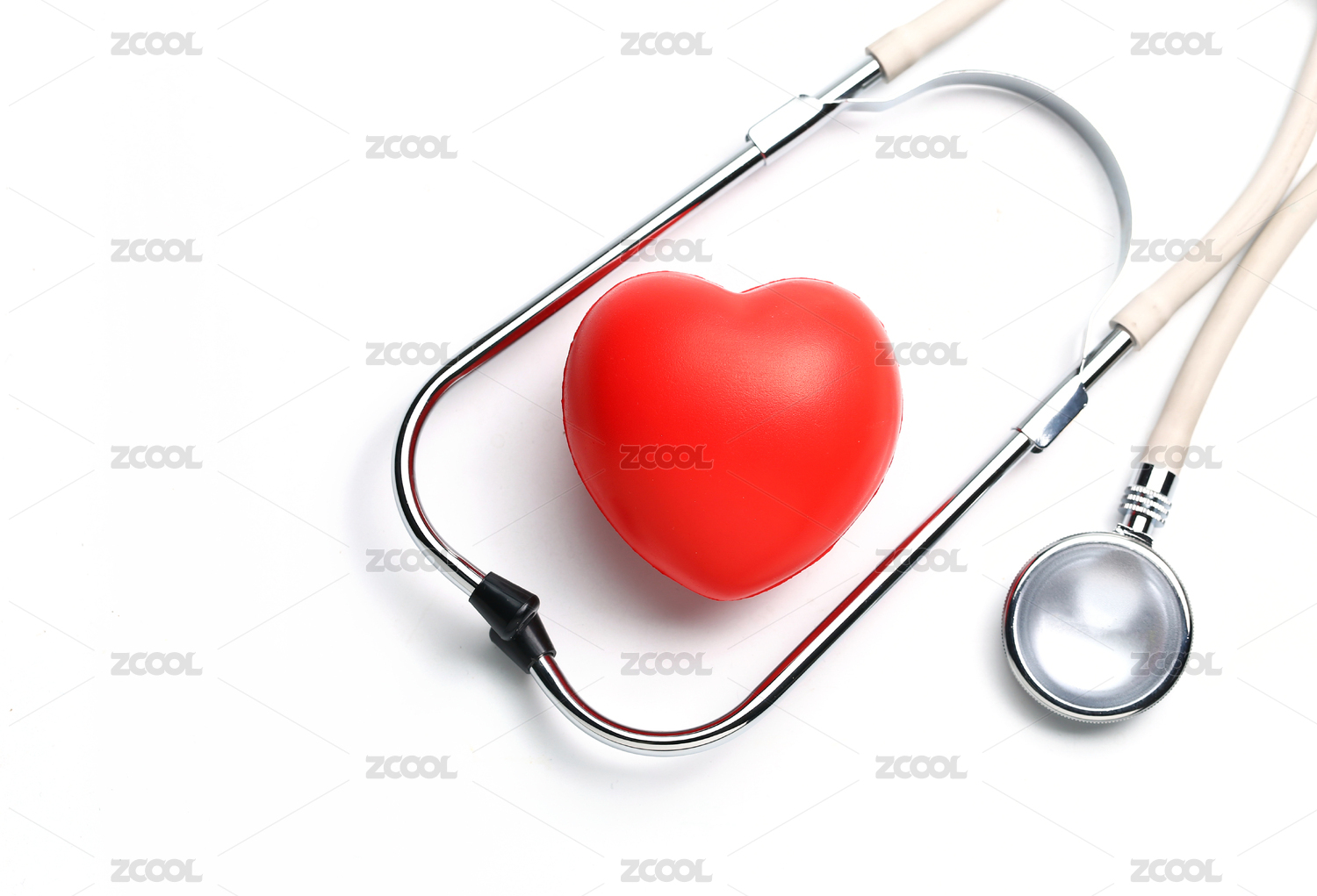 听诊器和红心放在白色背景上
