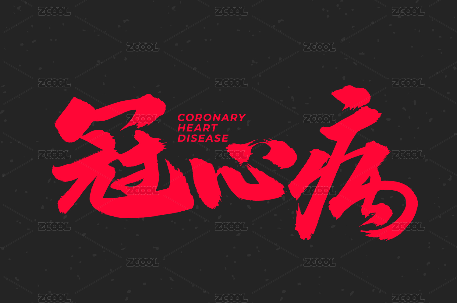冠心病矢量书法手写毛笔字
