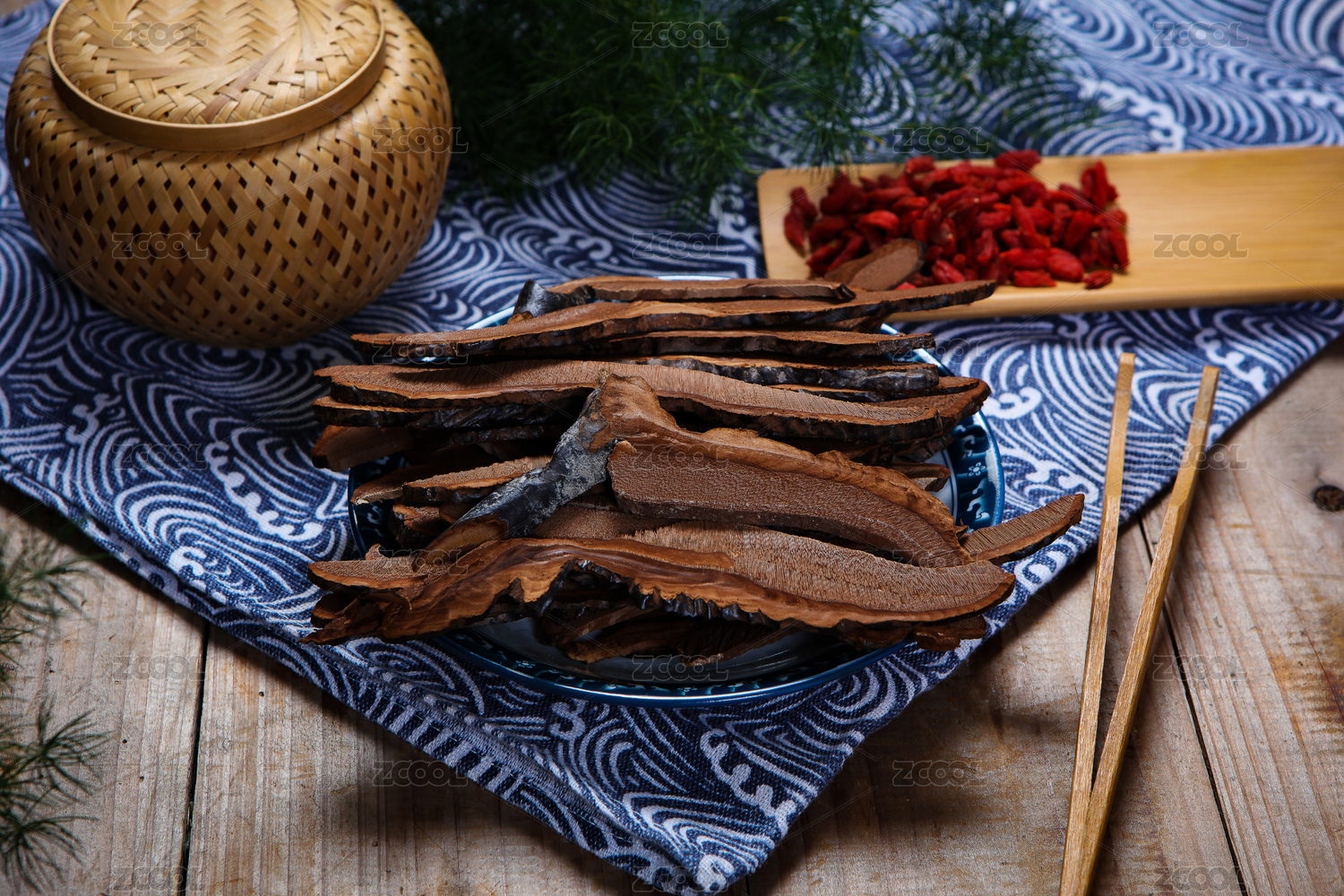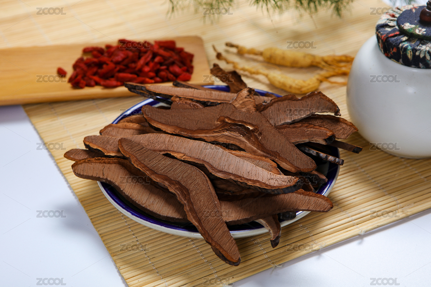 白底上放着灵芝片