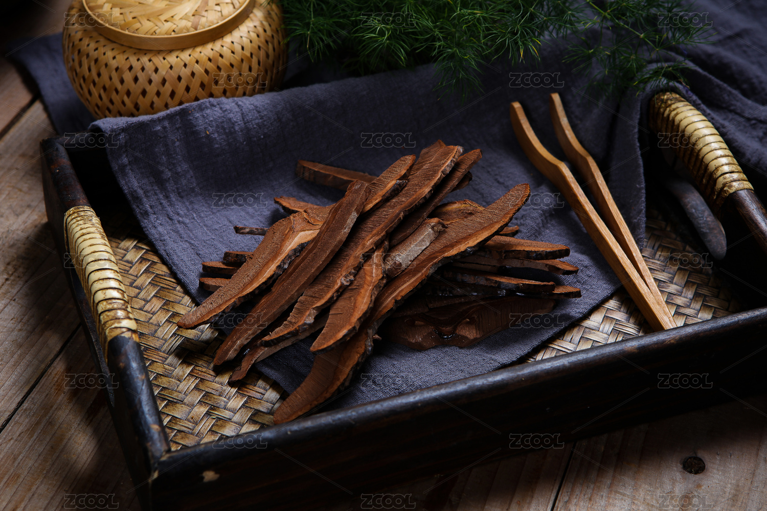木底上放着一碗灵芝片