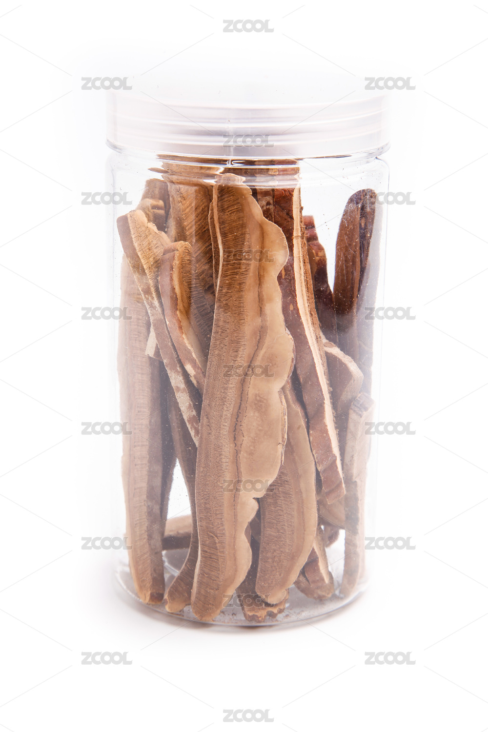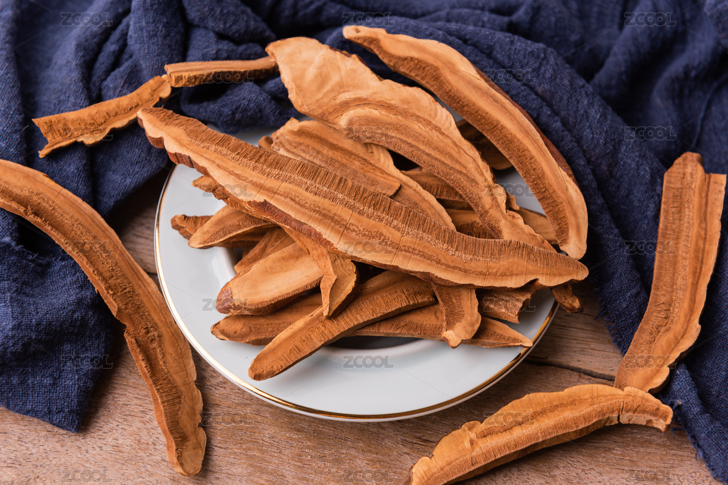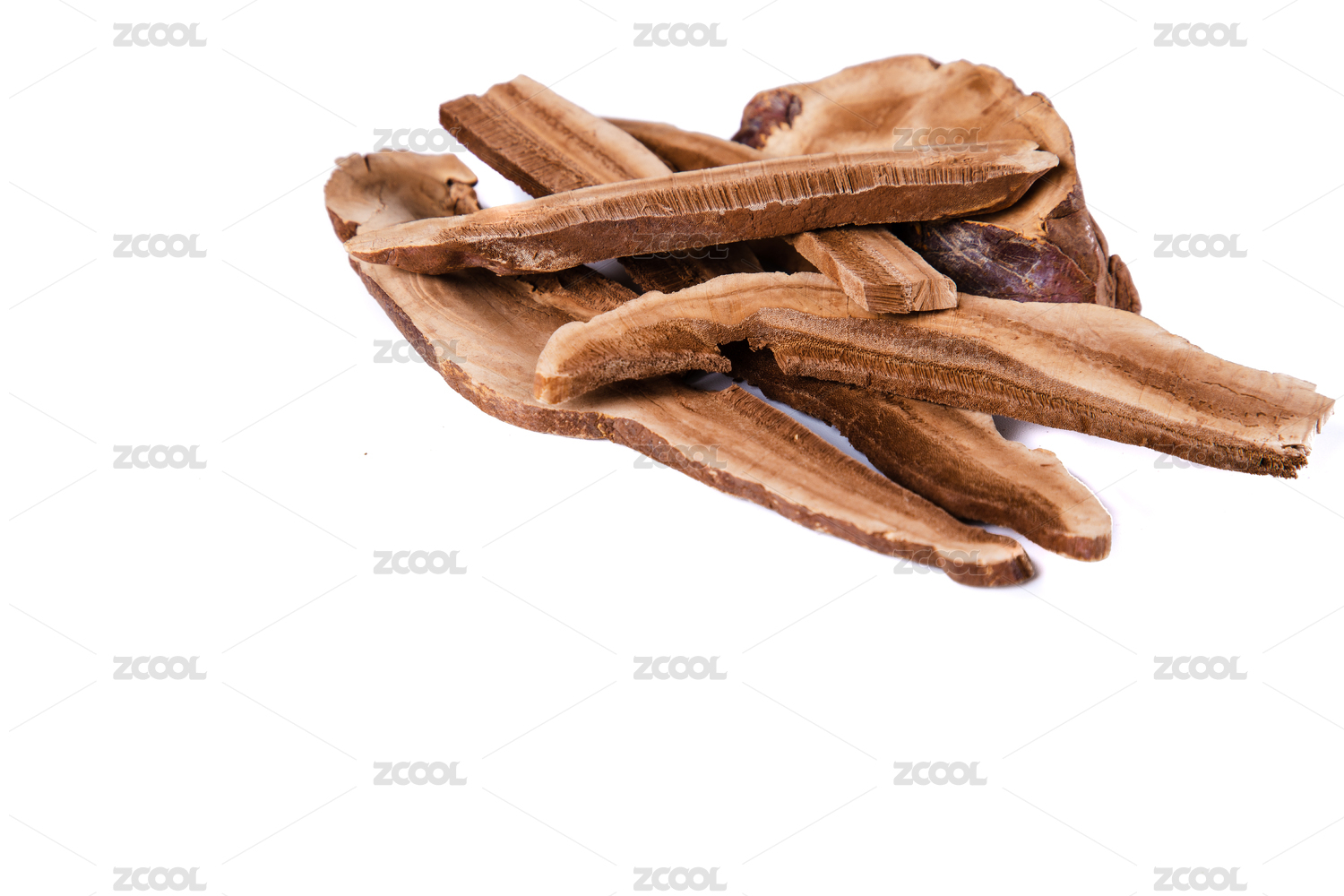 白色背景特写一堆中药灵芝片